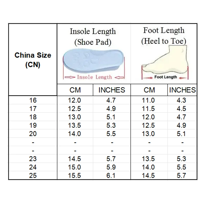 The Size isn't Standard US Size or Euro Size, please choose the size according to "Foot Length" or "Insole Length".