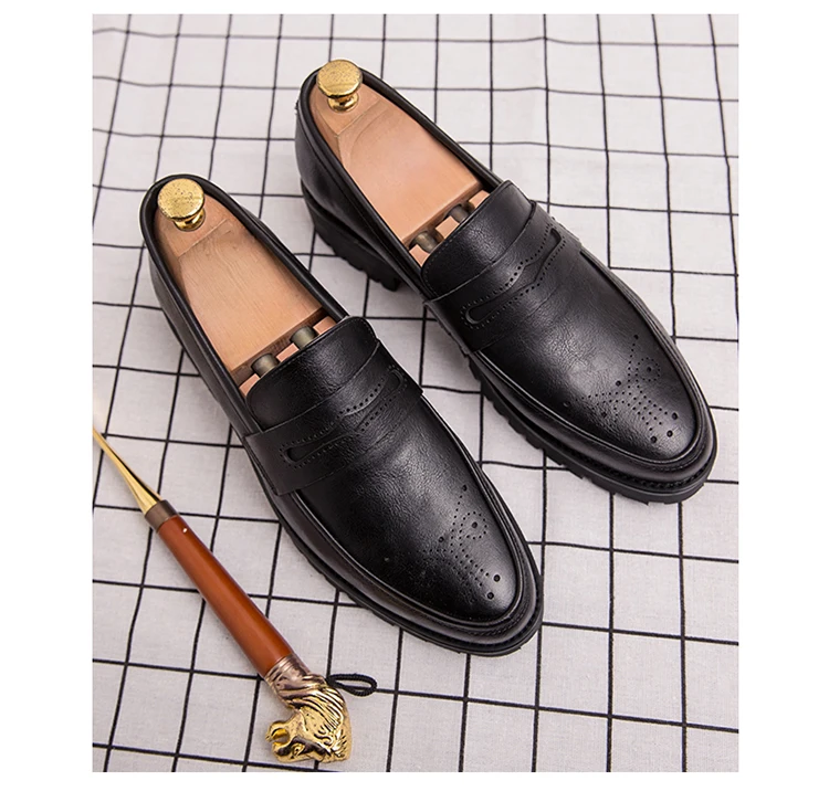 2022 Luxury Brand Penny Loafers men Casual shoes Slip on Leather Dress shoes big size 38-46 Brogue Carving loafer Driving party