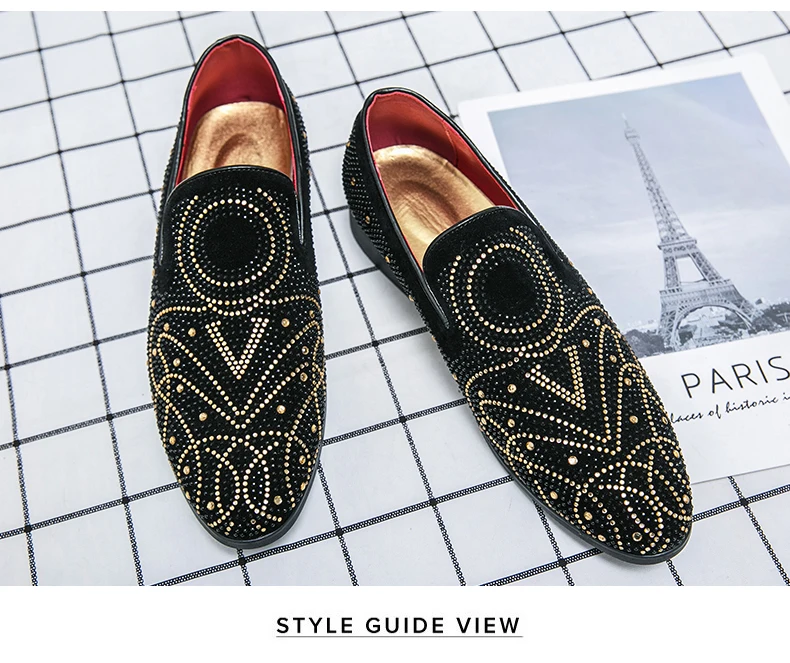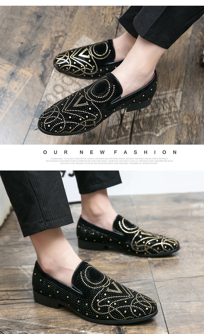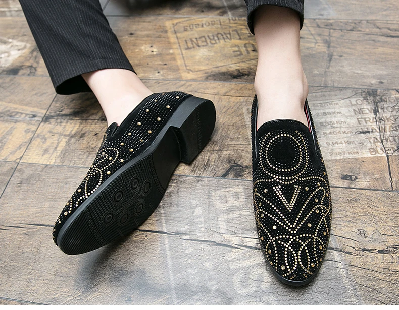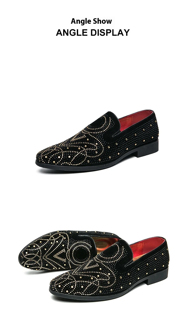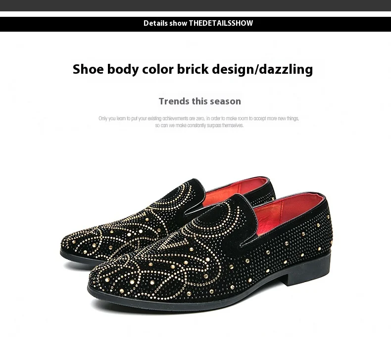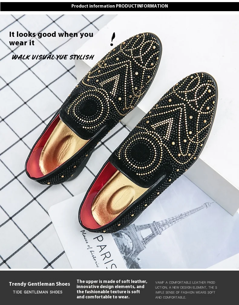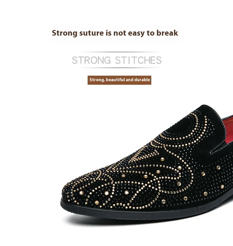 2024 new riveted rhine-drill pointed leather shoes male hair stylist fashion shoes a slip-on lazy casual men's shoes