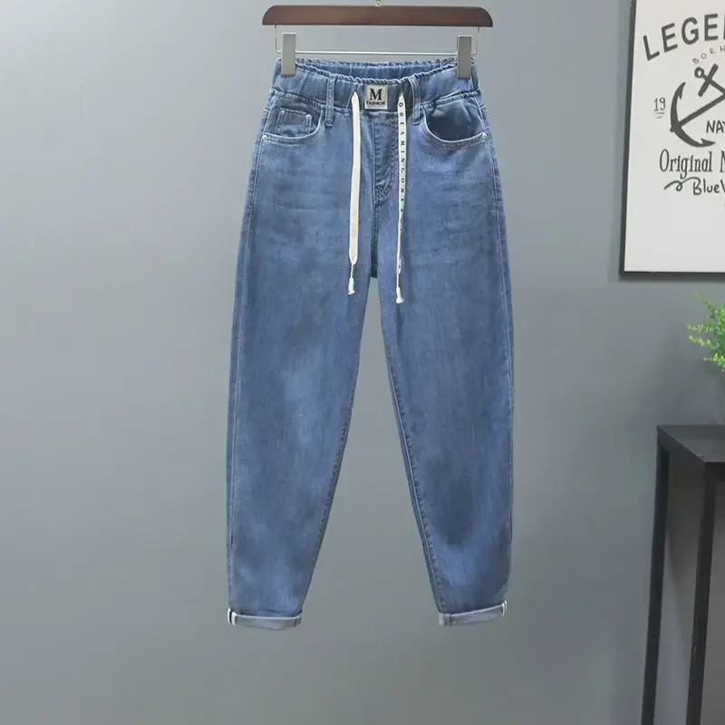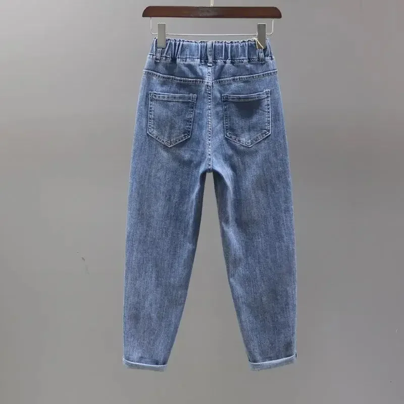 2024 New Women's Jeans High-waisted Elastic Waist Slimming Straight-leg Harem Trousers Autumn Fashion Trend