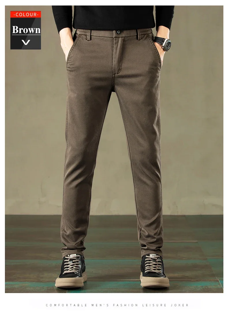 2024 Spring New Men's Casual Pants Brand Clothing Business Elastic Waist Thick Classic Slim Trousers Male Black Grey Brow
