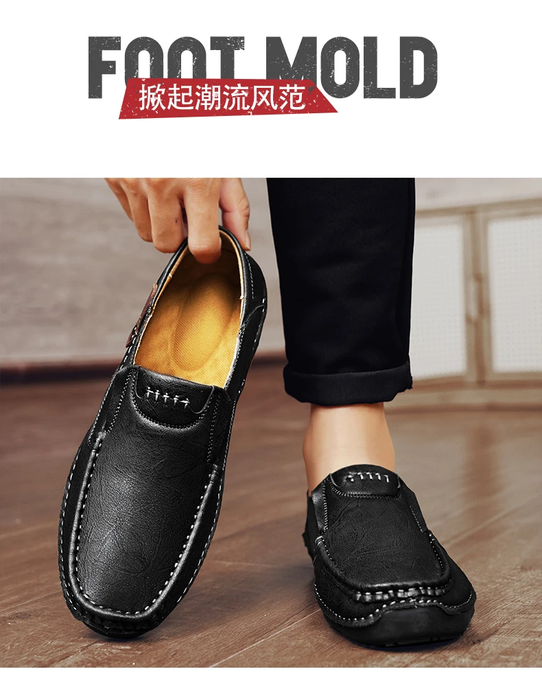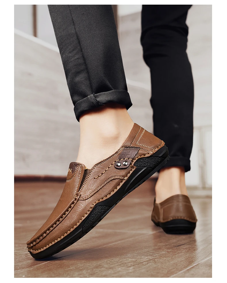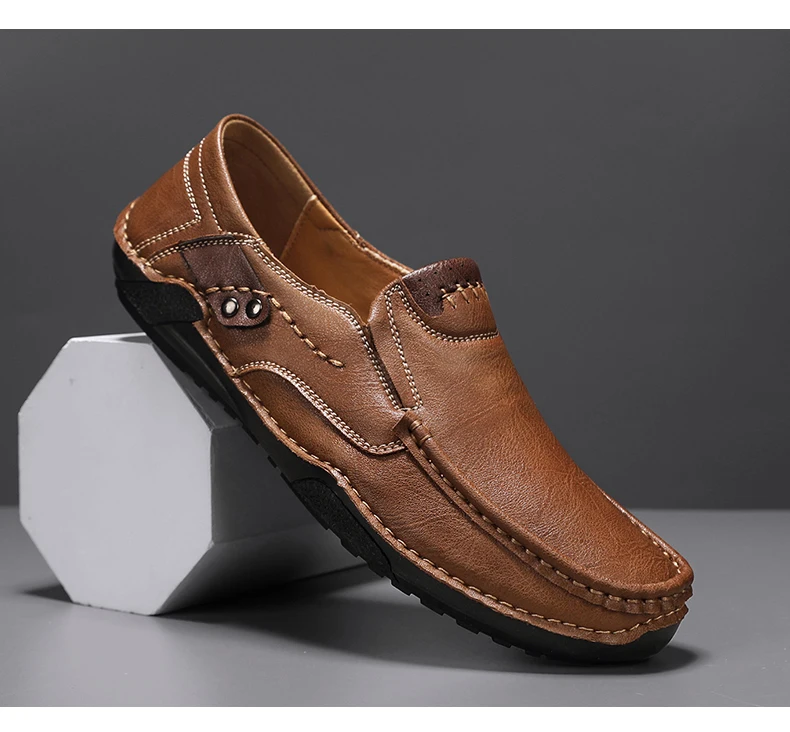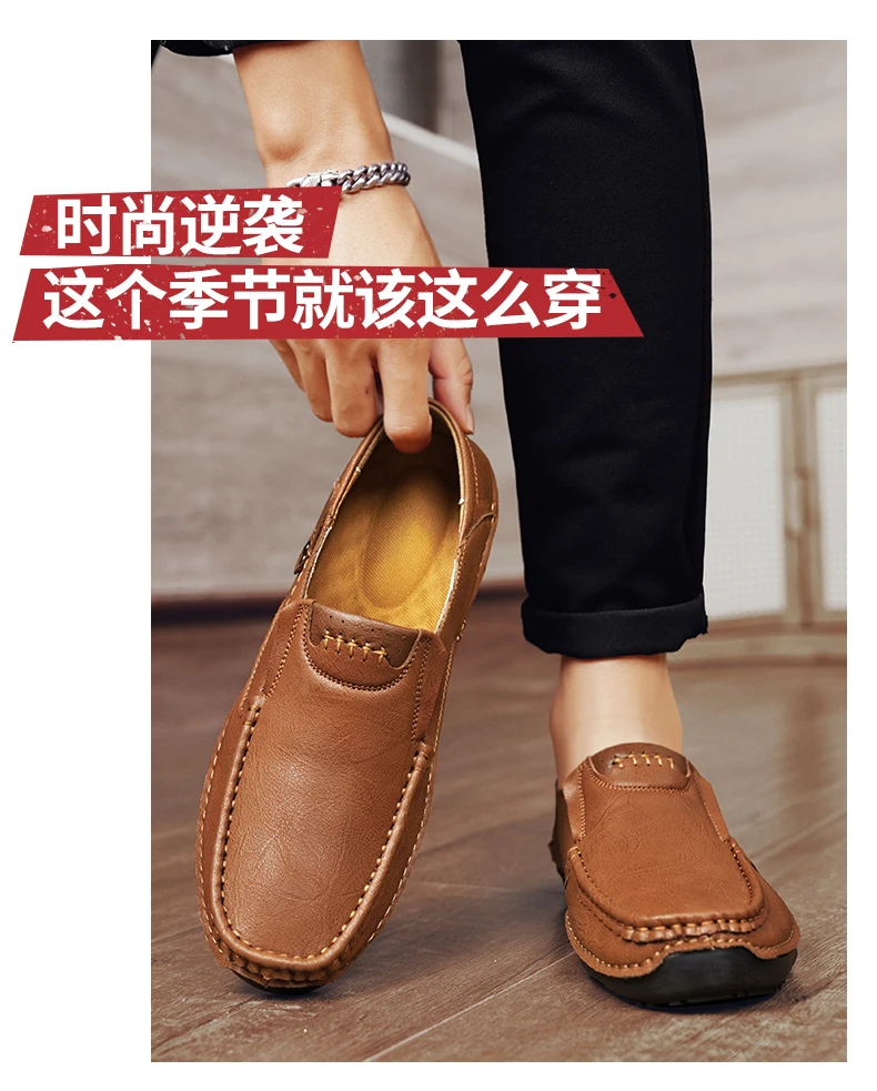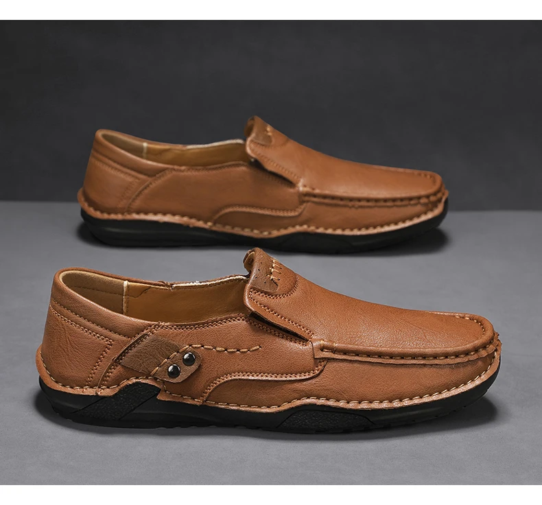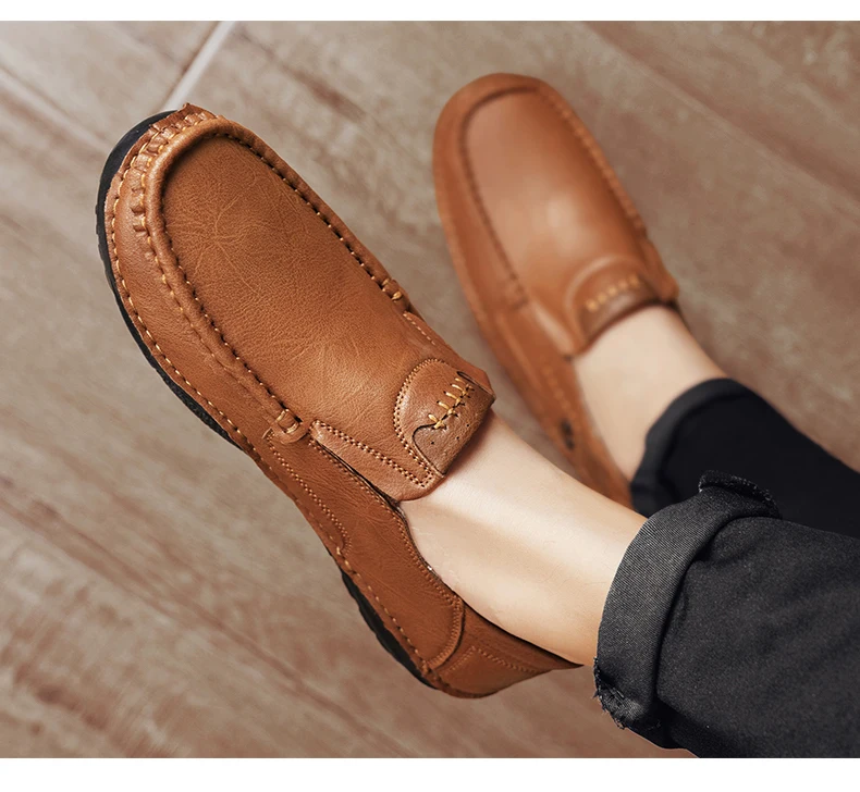 2025 Autumn New Men's Casual Handmade Loaf Leather Shoes Slip-On Lazy Business Casual Soft Leather Soft Sole Beanie Shoes Dad Men's Shoes Driving Shoes