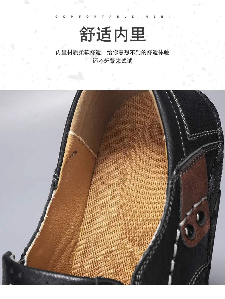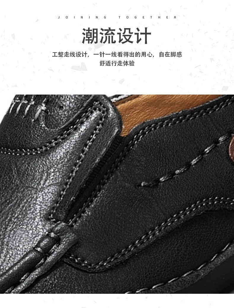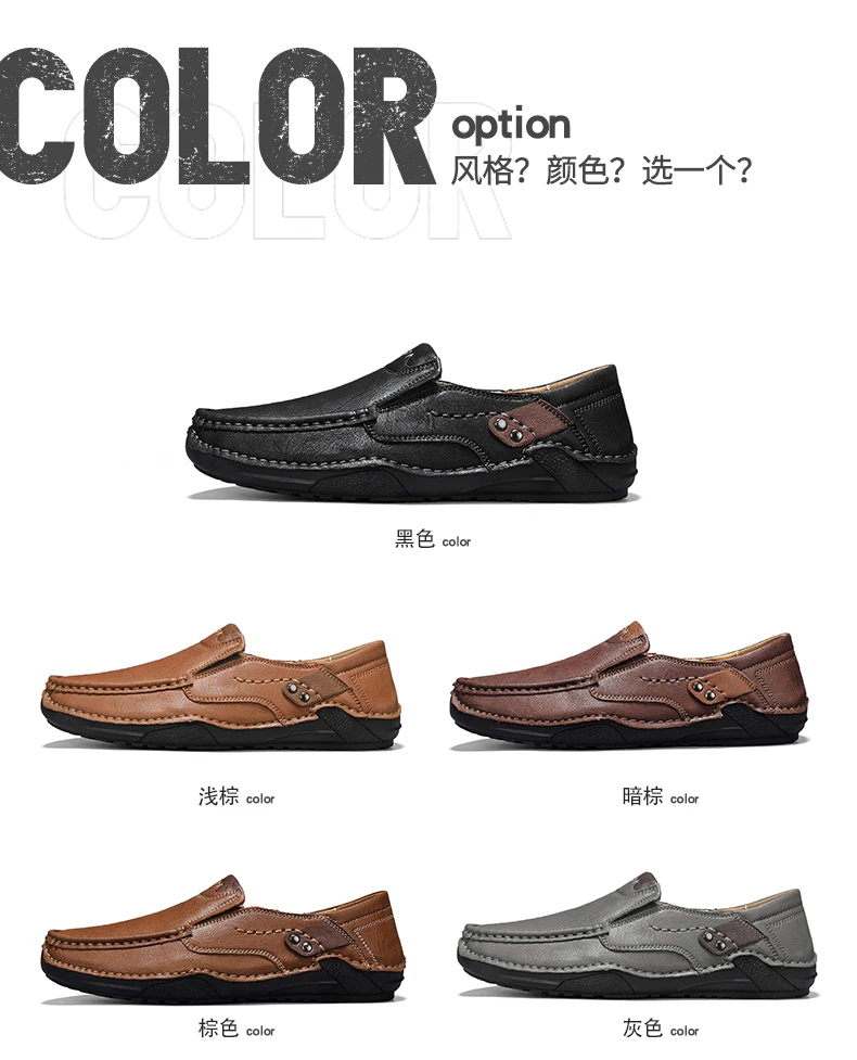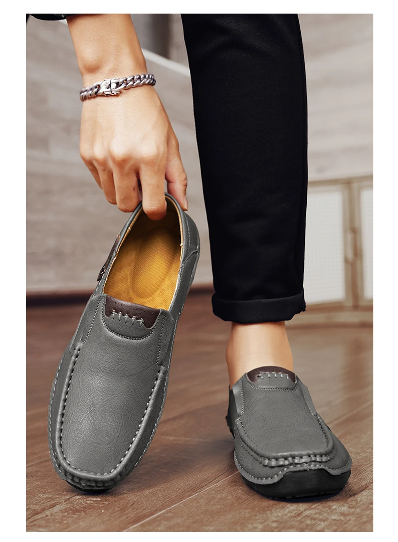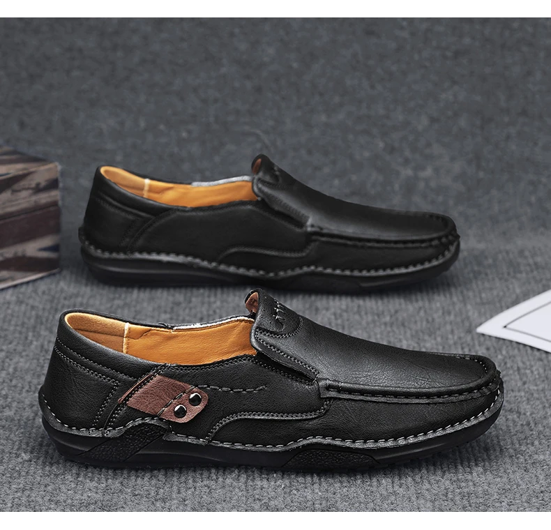 2025 Autumn New Men's Casual Handmade Loaf Leather Shoes Slip-On Lazy Business Casual Soft Leather Soft Sole Beanie Shoes Dad Men's Shoes Driving Shoes