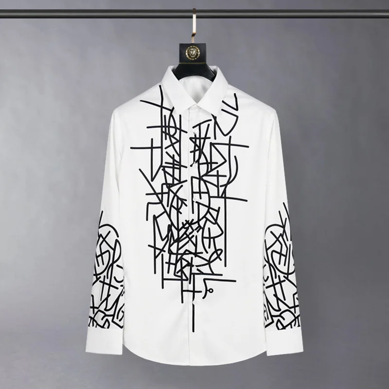 2025 Summer Letter Graffiti Printed Shirts Men High Quality Casual Business Shirt Long Sleeve Social Banquet Party Blouse