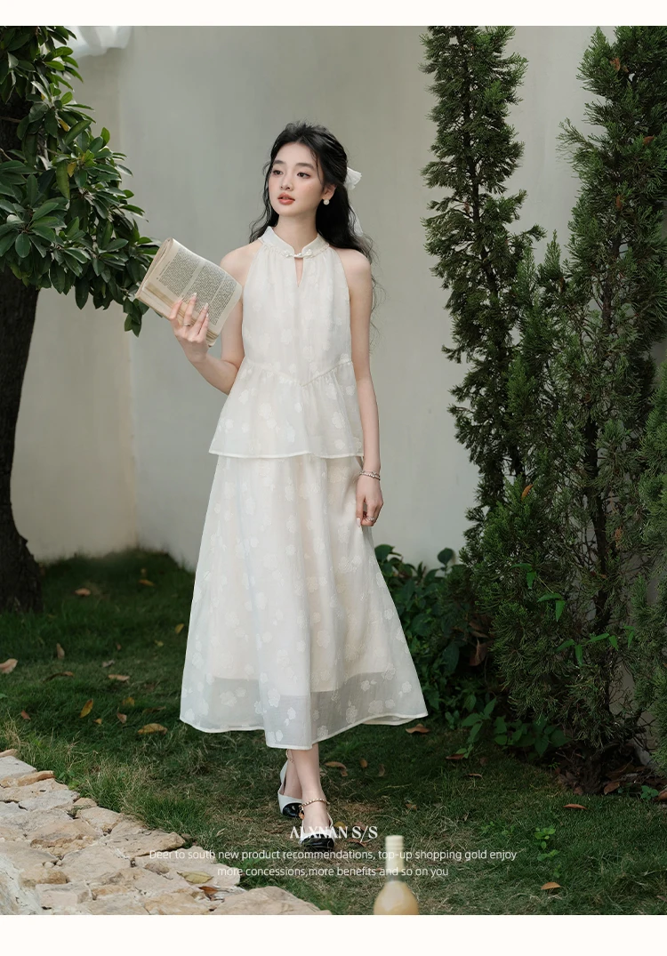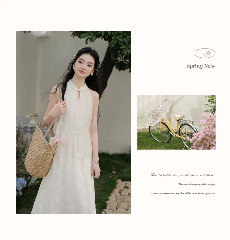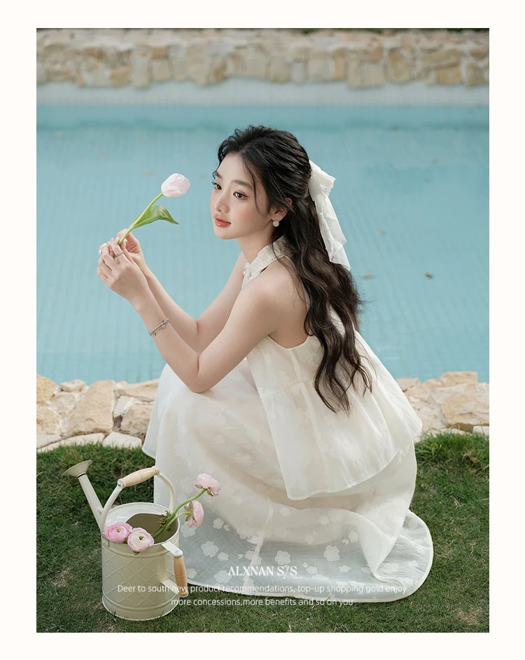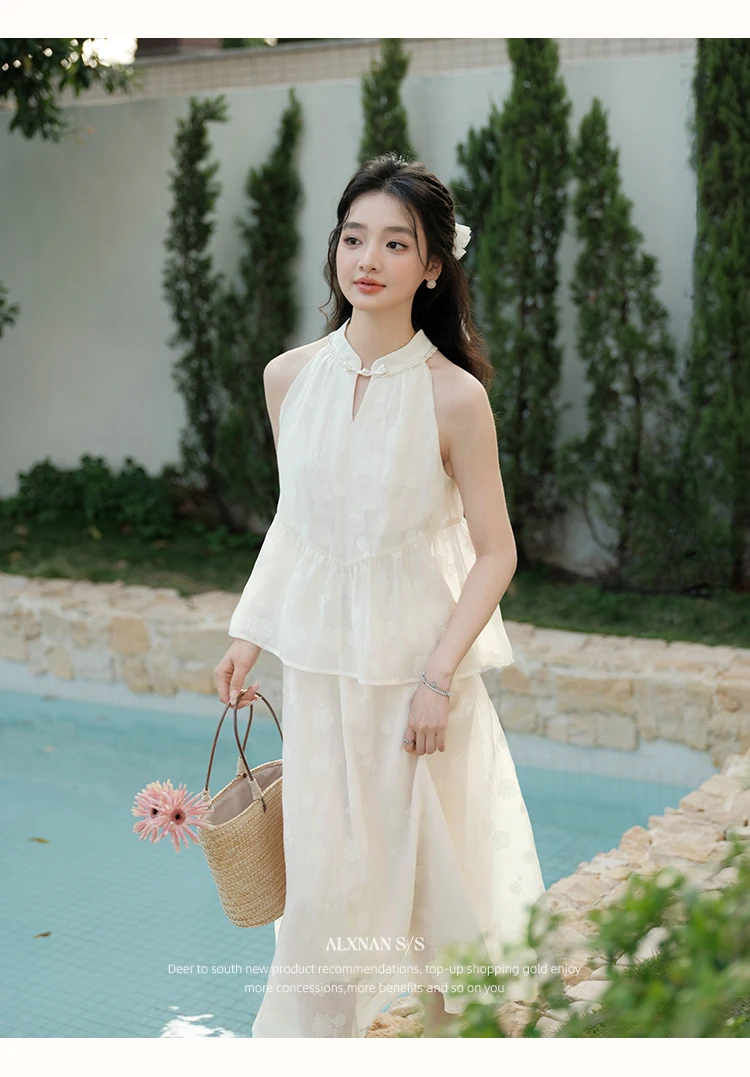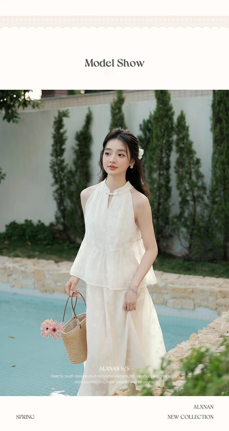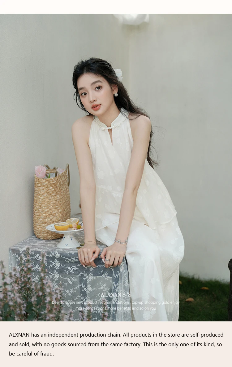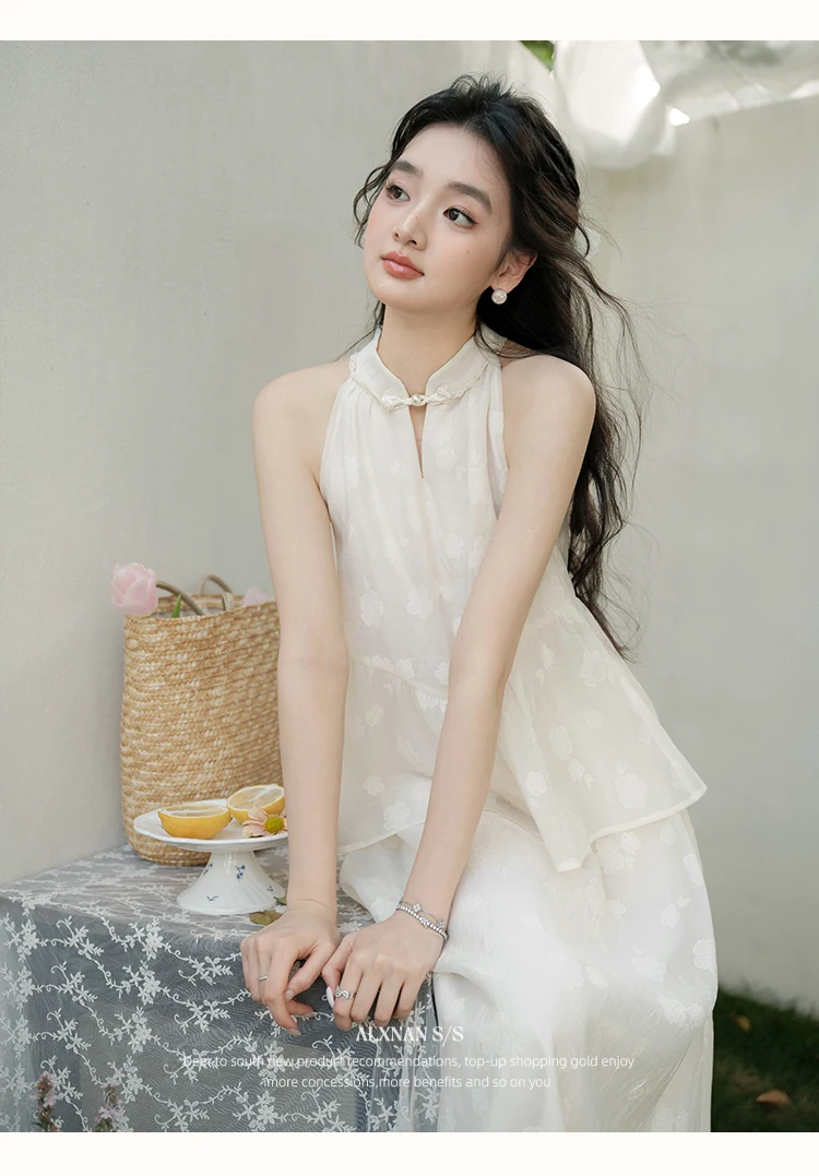ALXNAN Women's Dress 2025 Summer Vacation Long One-piece Dress Elegant Holiday Party Casual Sleeveless Ladies Clothing L53733