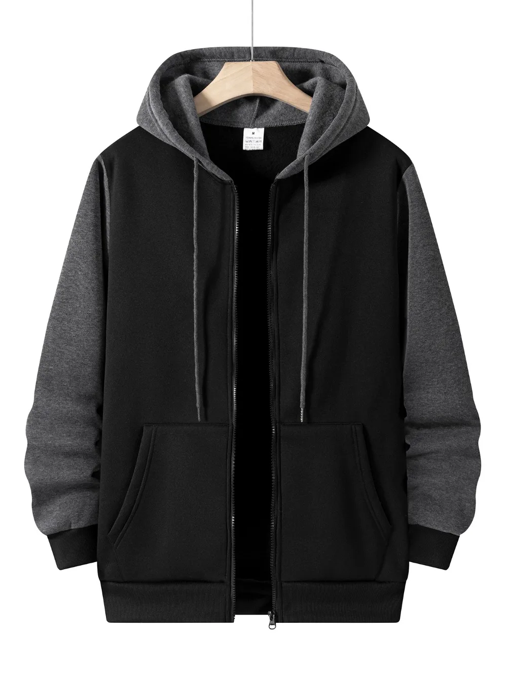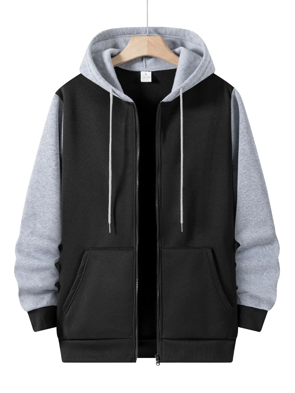 Autumn Zipper Closure Hoodies Long Sleeve Jacket Men's Sports Casual Hooded Sweatshirt Multi Pockets Outdoor Jogging Clothing