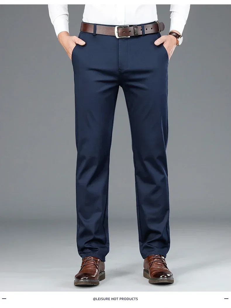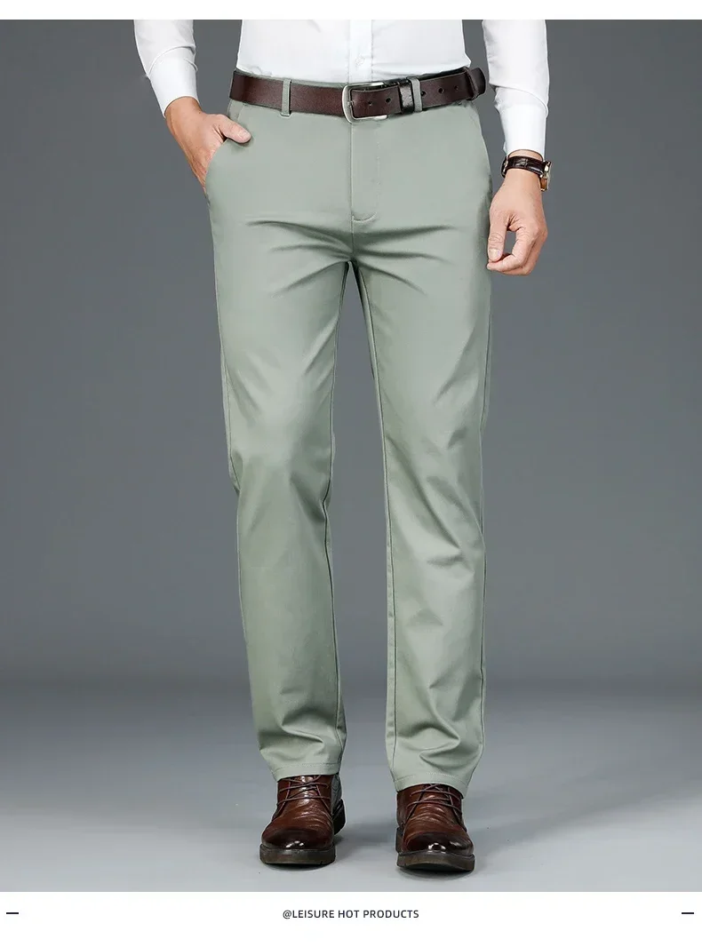 Bamboo Fiber Men's Casual Pants Black Spring Autumn New Style Stretch Straight Breathable Classic Business Suit Trousers Male