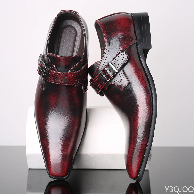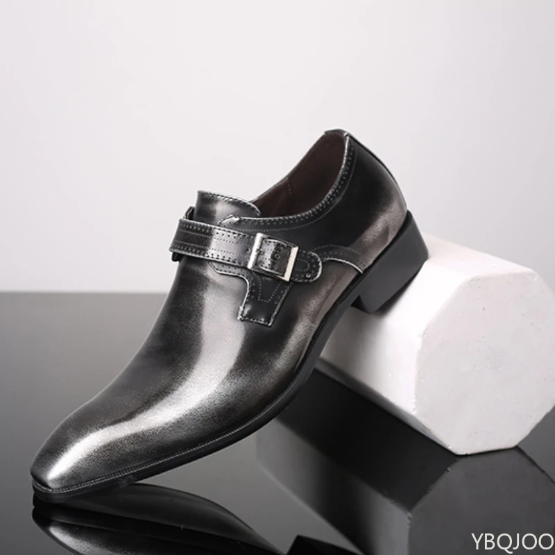 Belt buckle Men's Shoes Fashion Low heel Dress shoes British plus size Leather non slip Footwear Male Formal Suit Shoe Homme