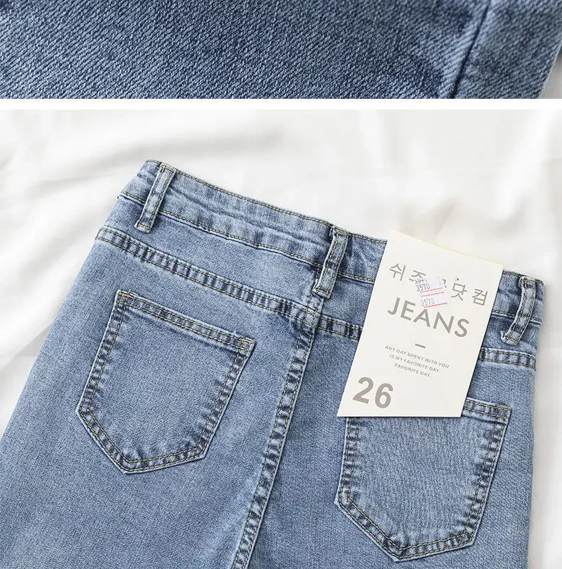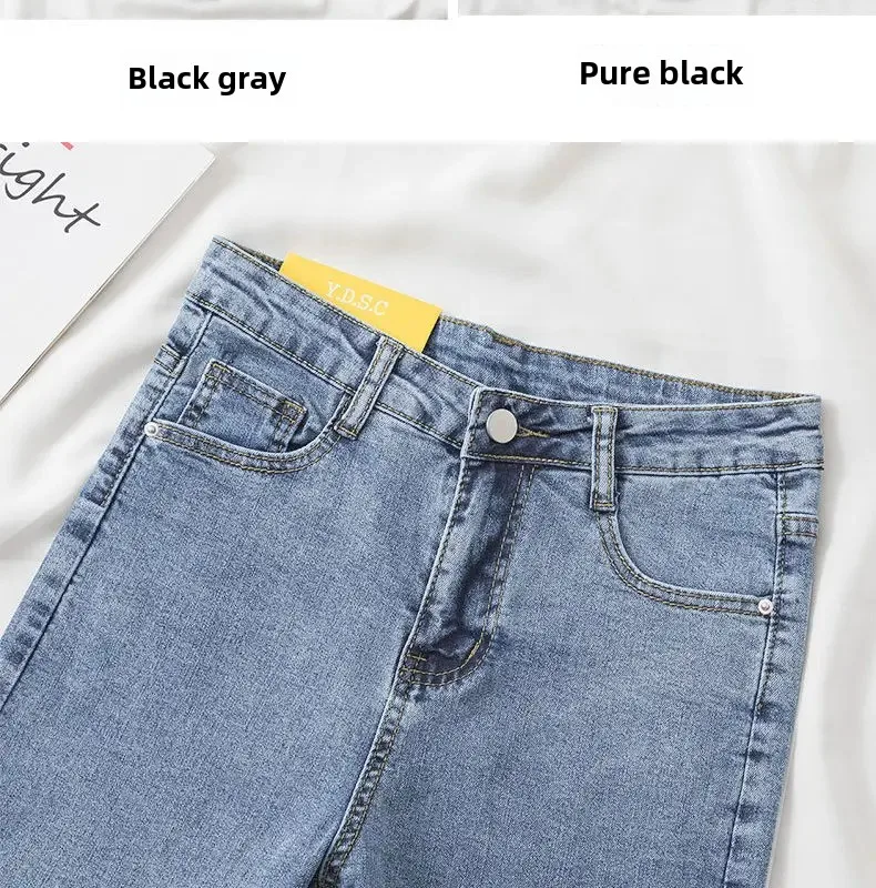 Black Grey Jeans Women's Slimming Cropped Pants Chic Versatile Student Short Trousers Long Pants Slim Fit Sihouette Smoothing