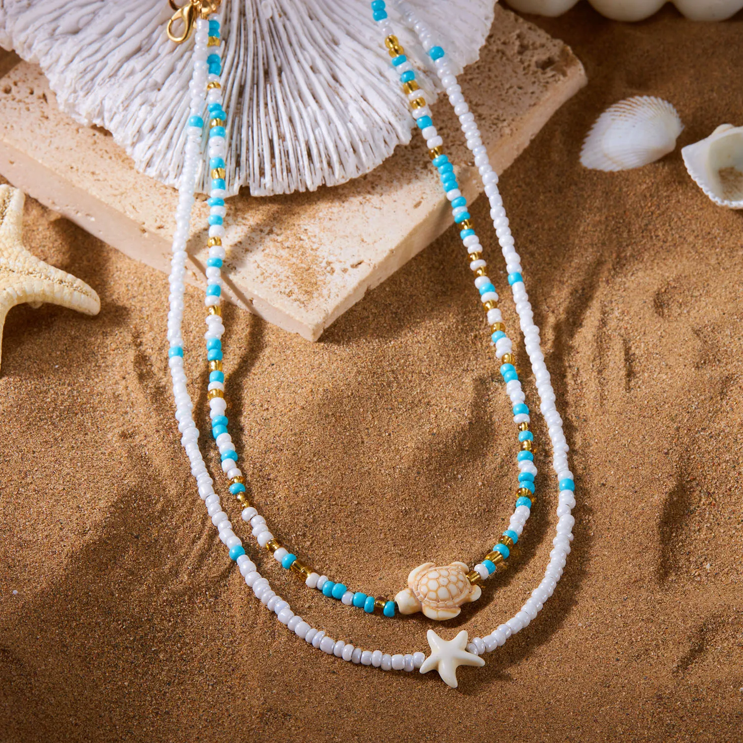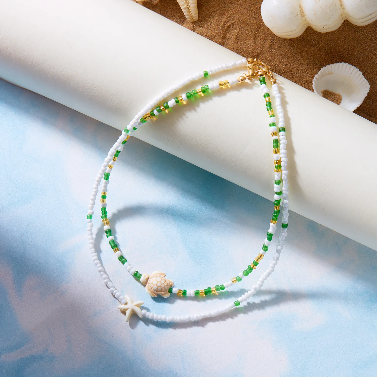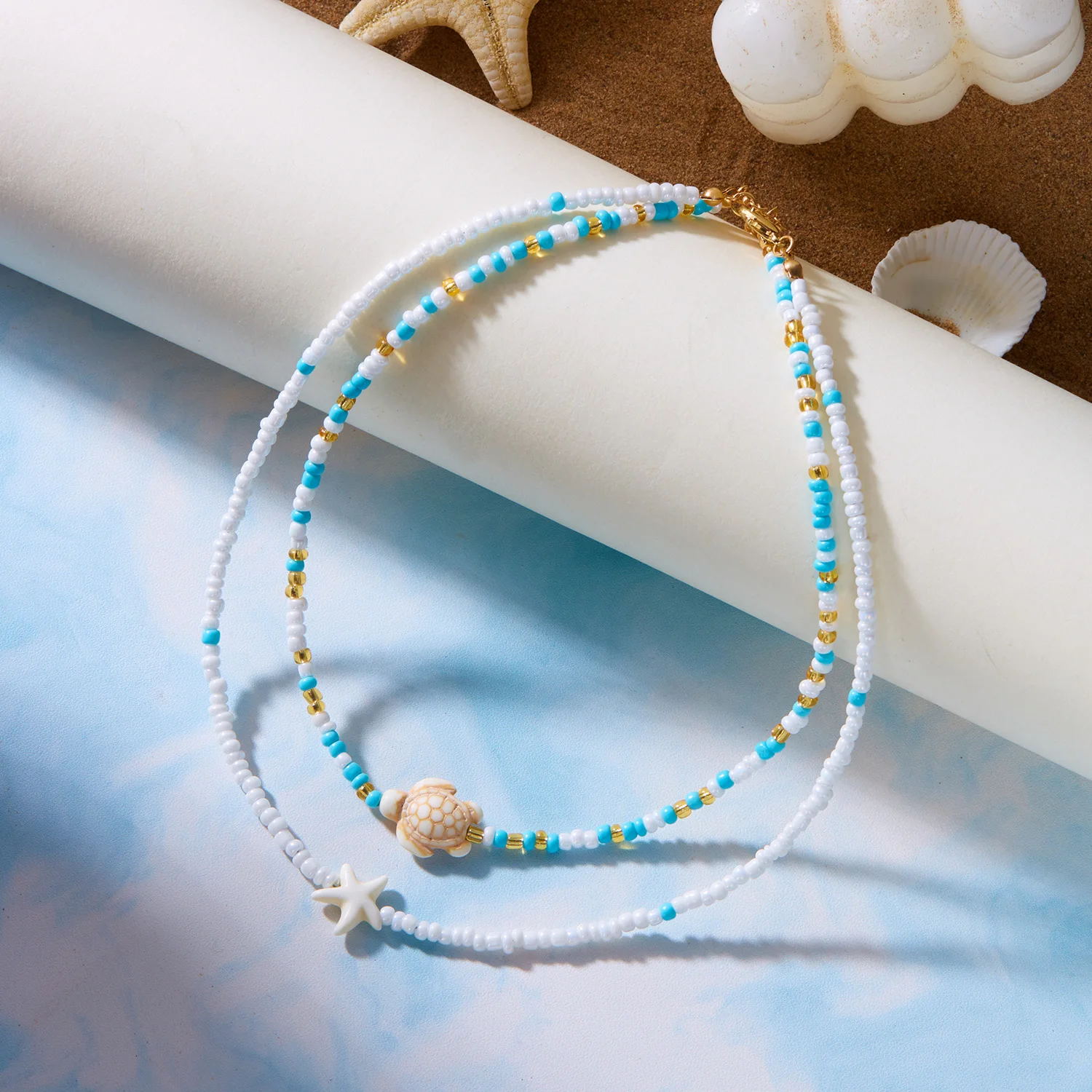 Bohemian Double Rice Bead Chain Clavicle Necklace for Women