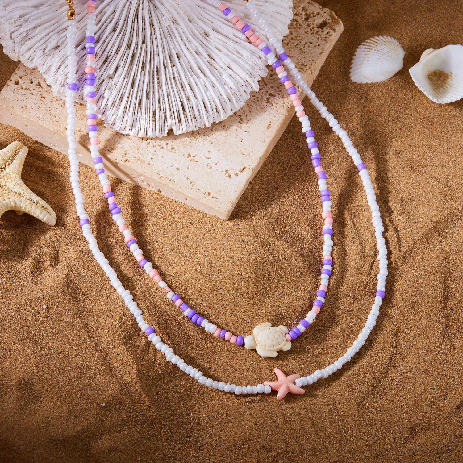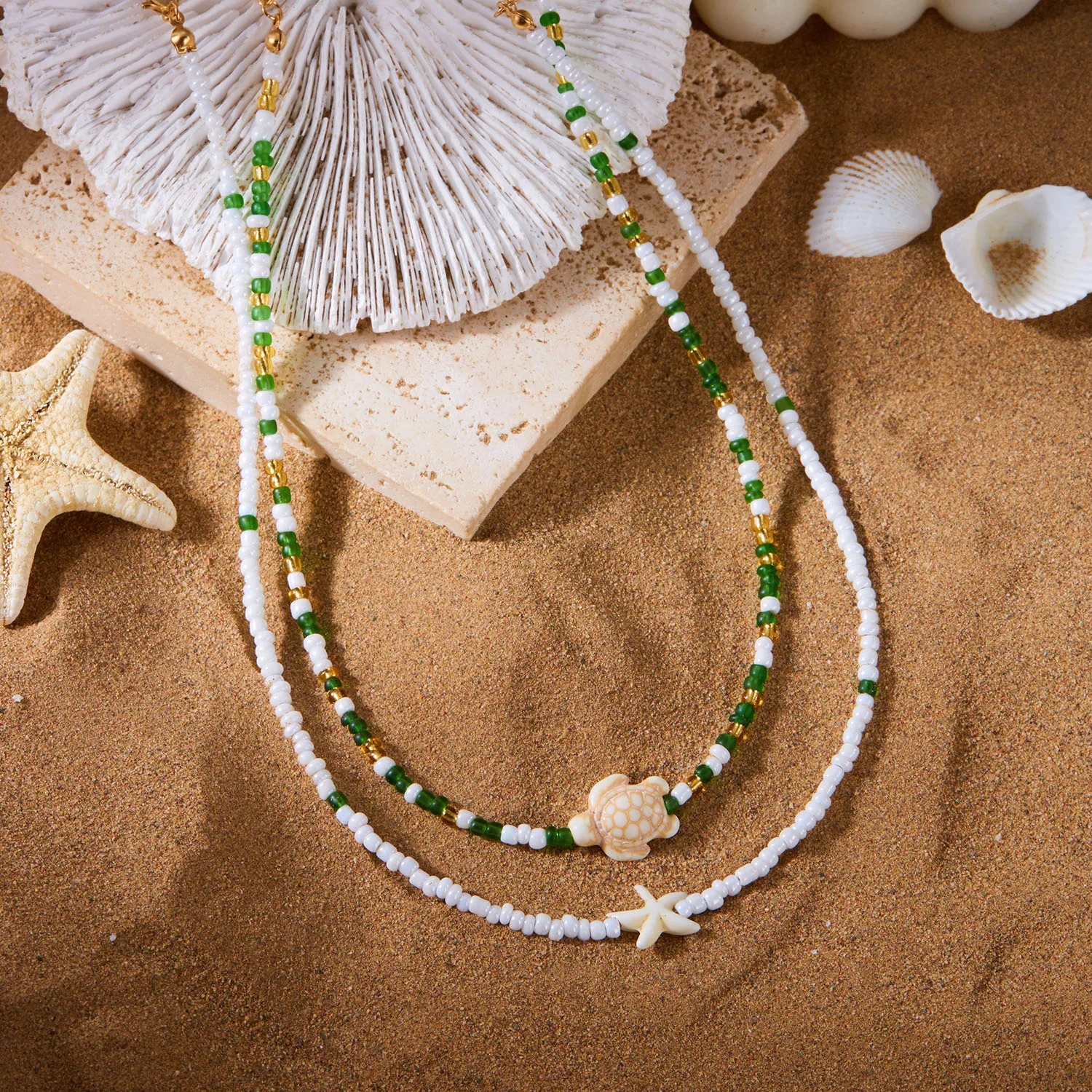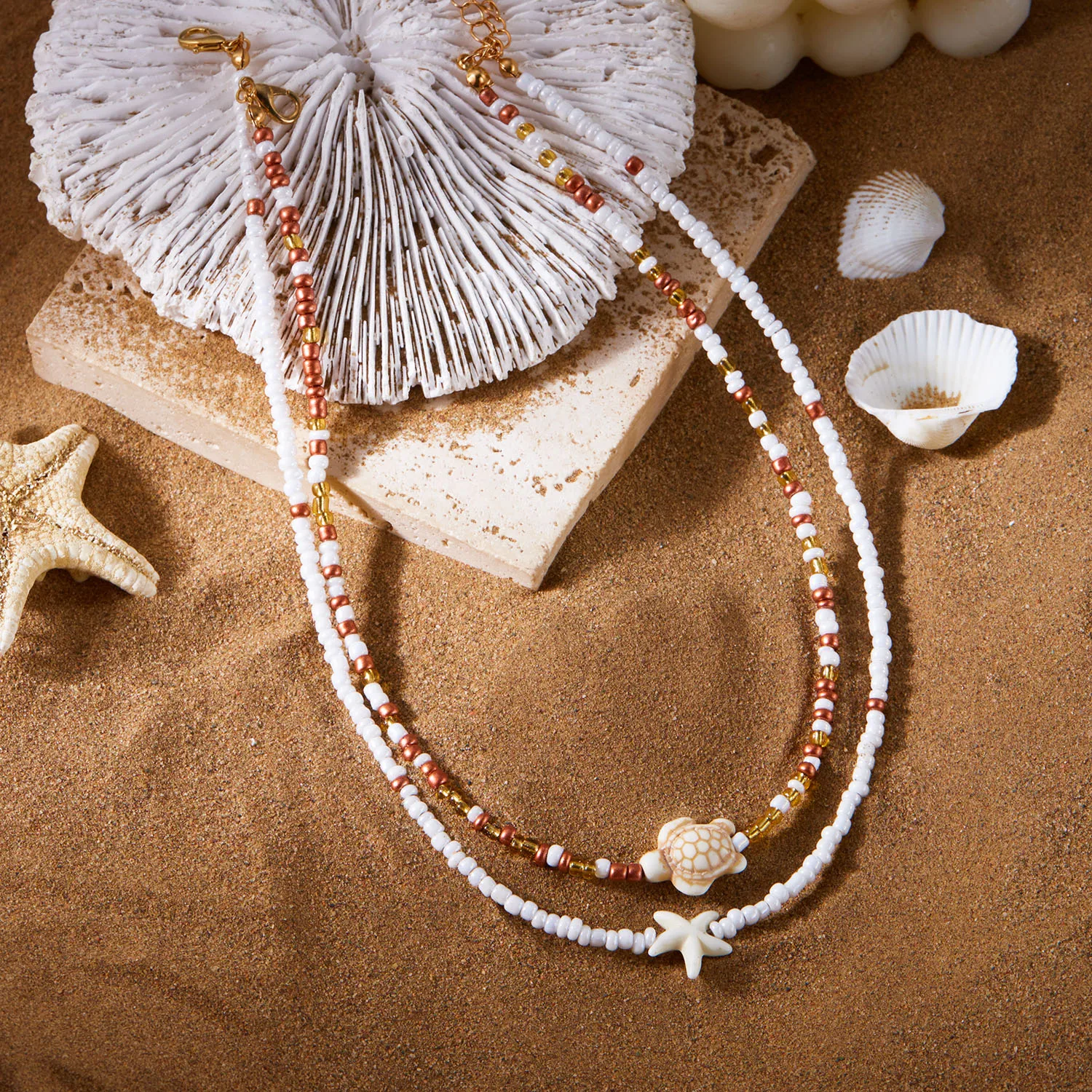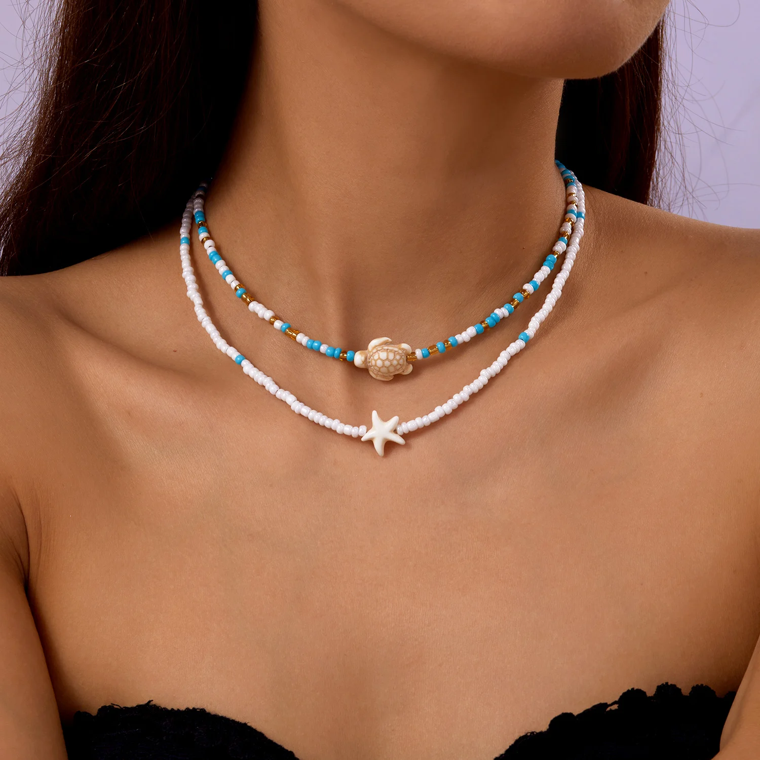Bohemian Double Rice Bead Chain Clavicle Necklace for Women