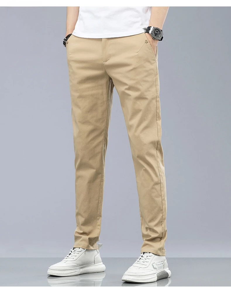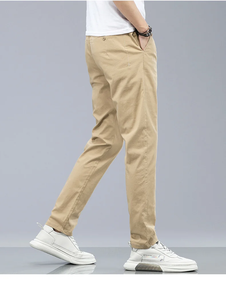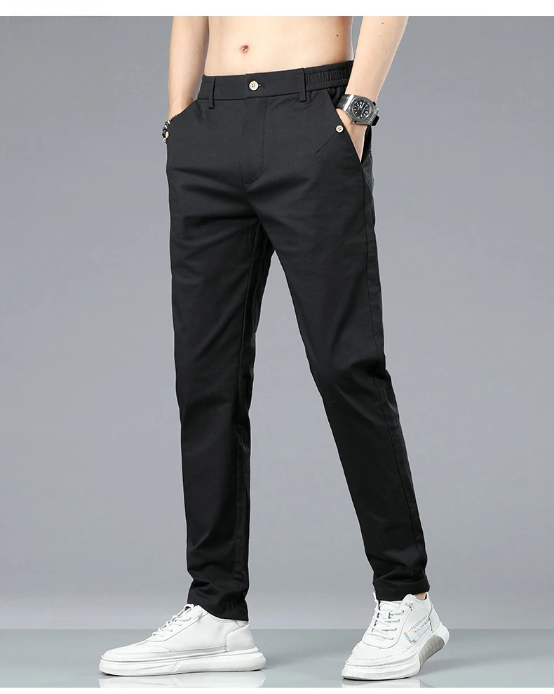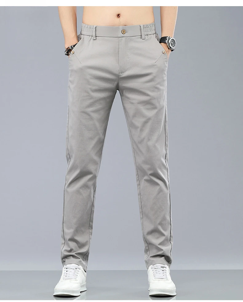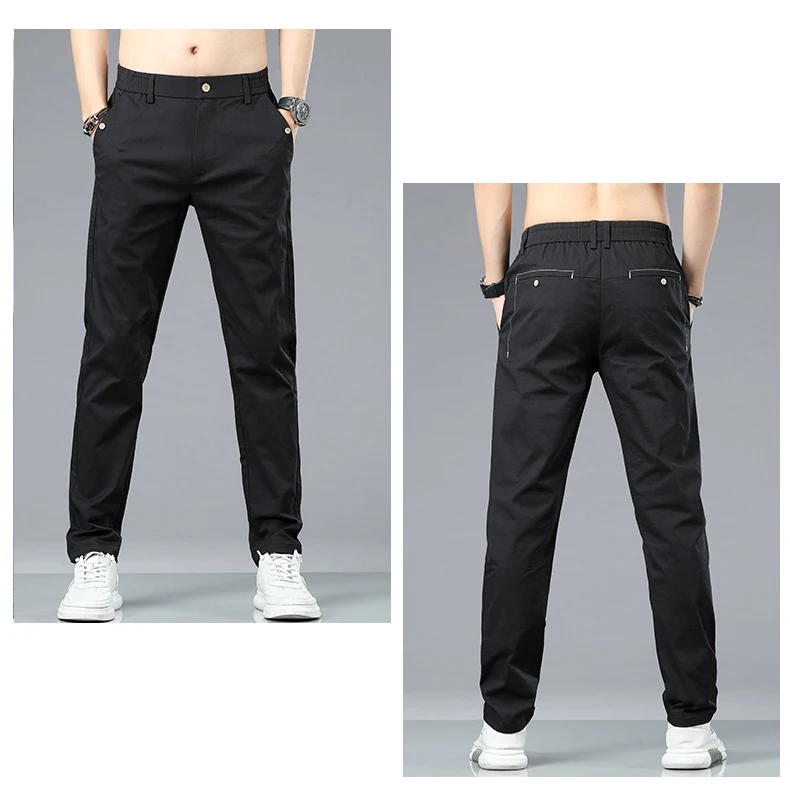 Brand Clothing Men's Casual Pants 98% Cotton Thin Business Straight Slim Fit Classic Trousers Stretch Spring Summer Male Pants