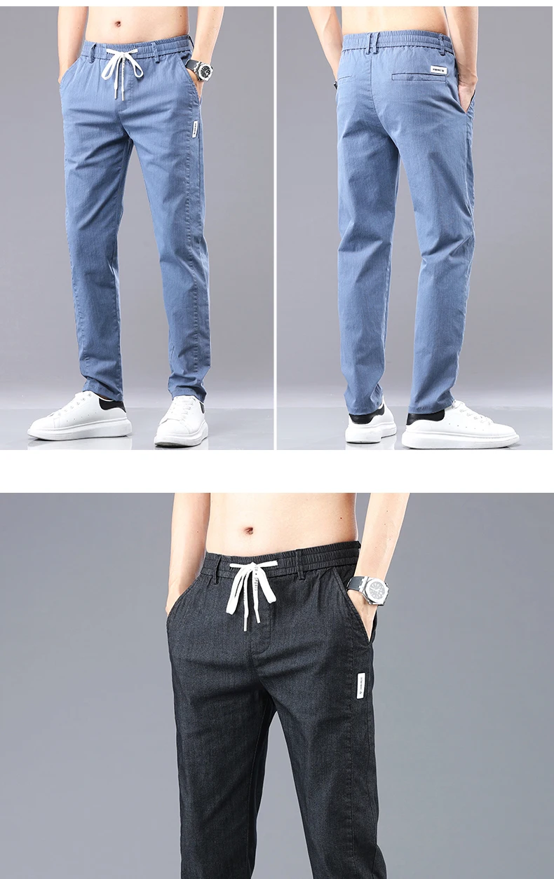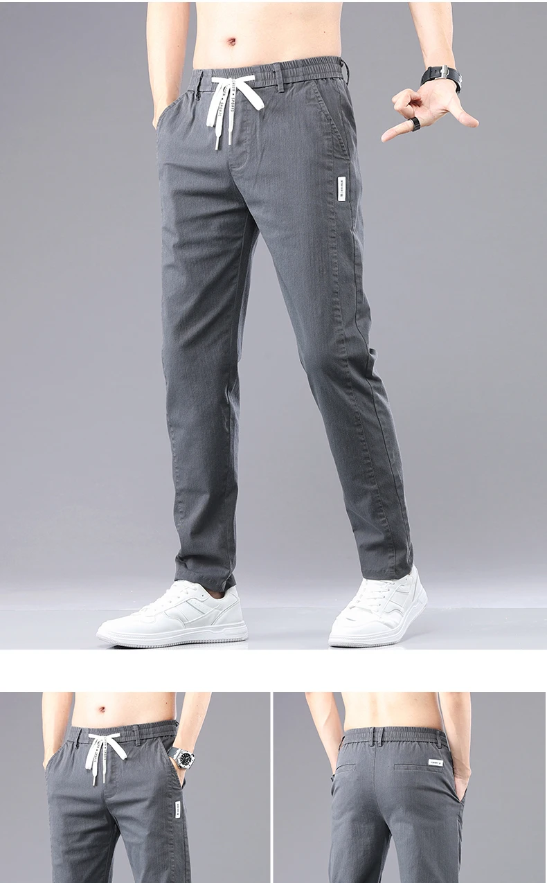 Brand Clothing Men's Casual Pants Spring Summer Thin Cotton Elastic Waist Design Jogging Trousers Solid Korean Men Sweatpants