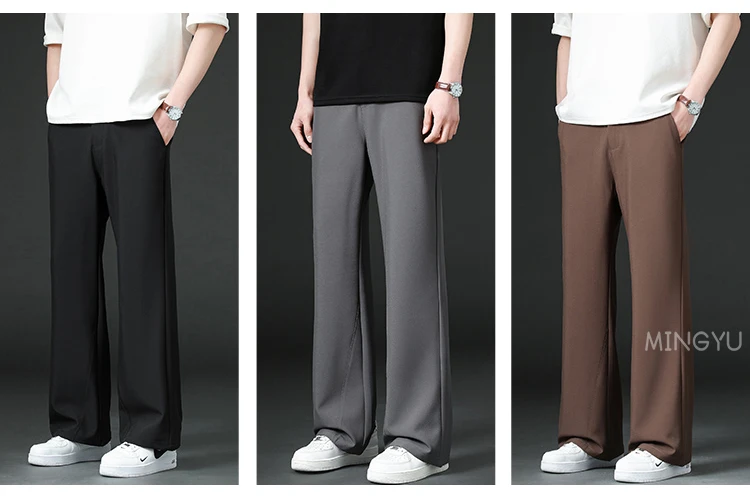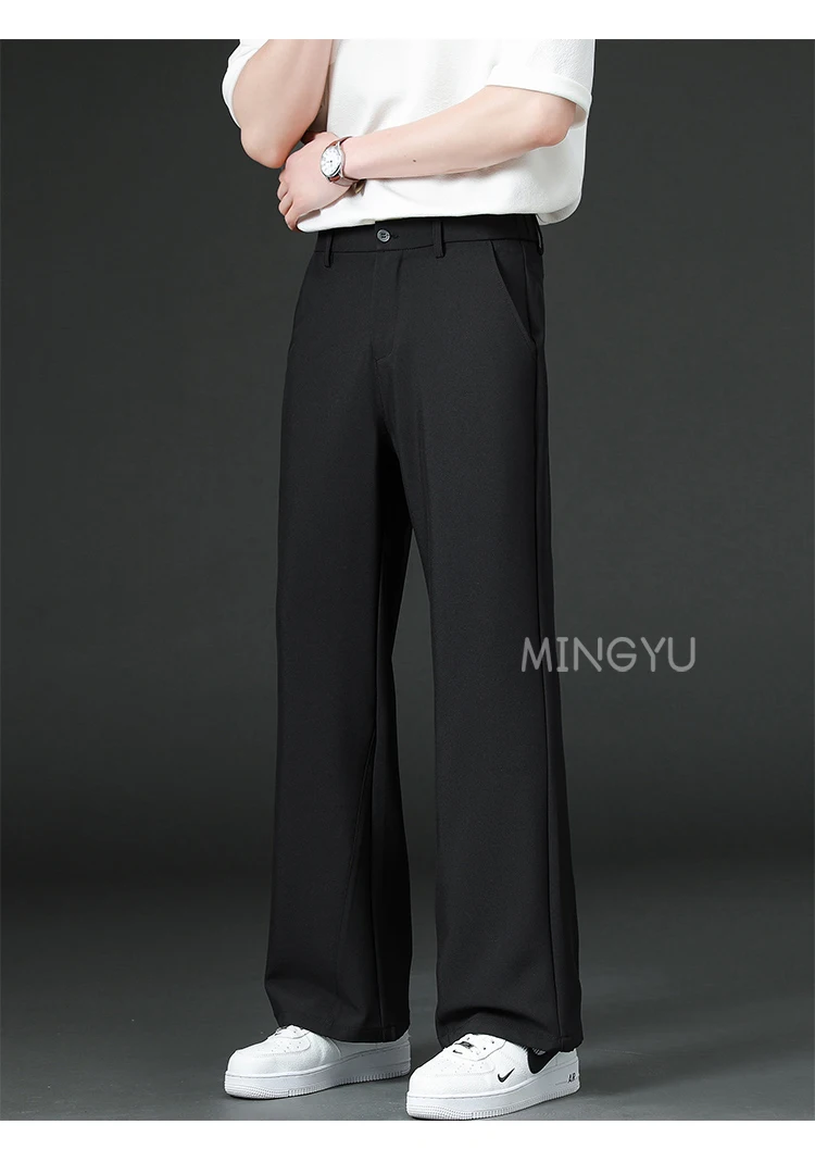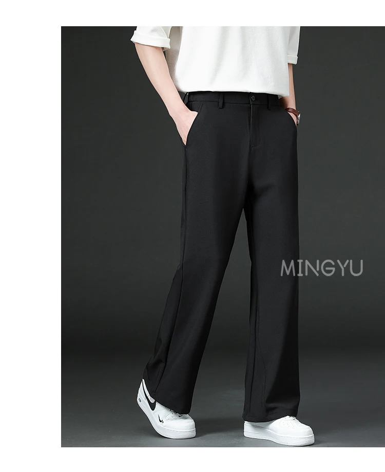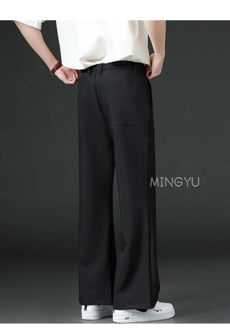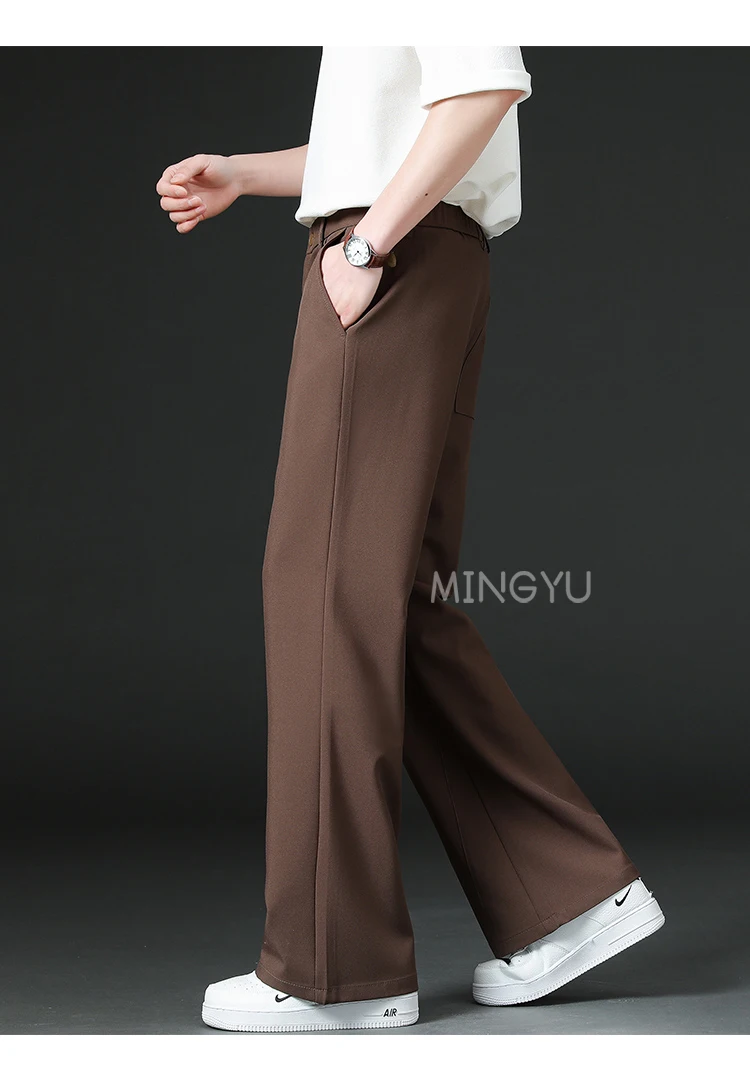 Brand Clothing Summer Smooth Flare Pants Men Business Elastic Waist Suit Flared Trousers Male Korean Work Office Plus Size S-4XL
