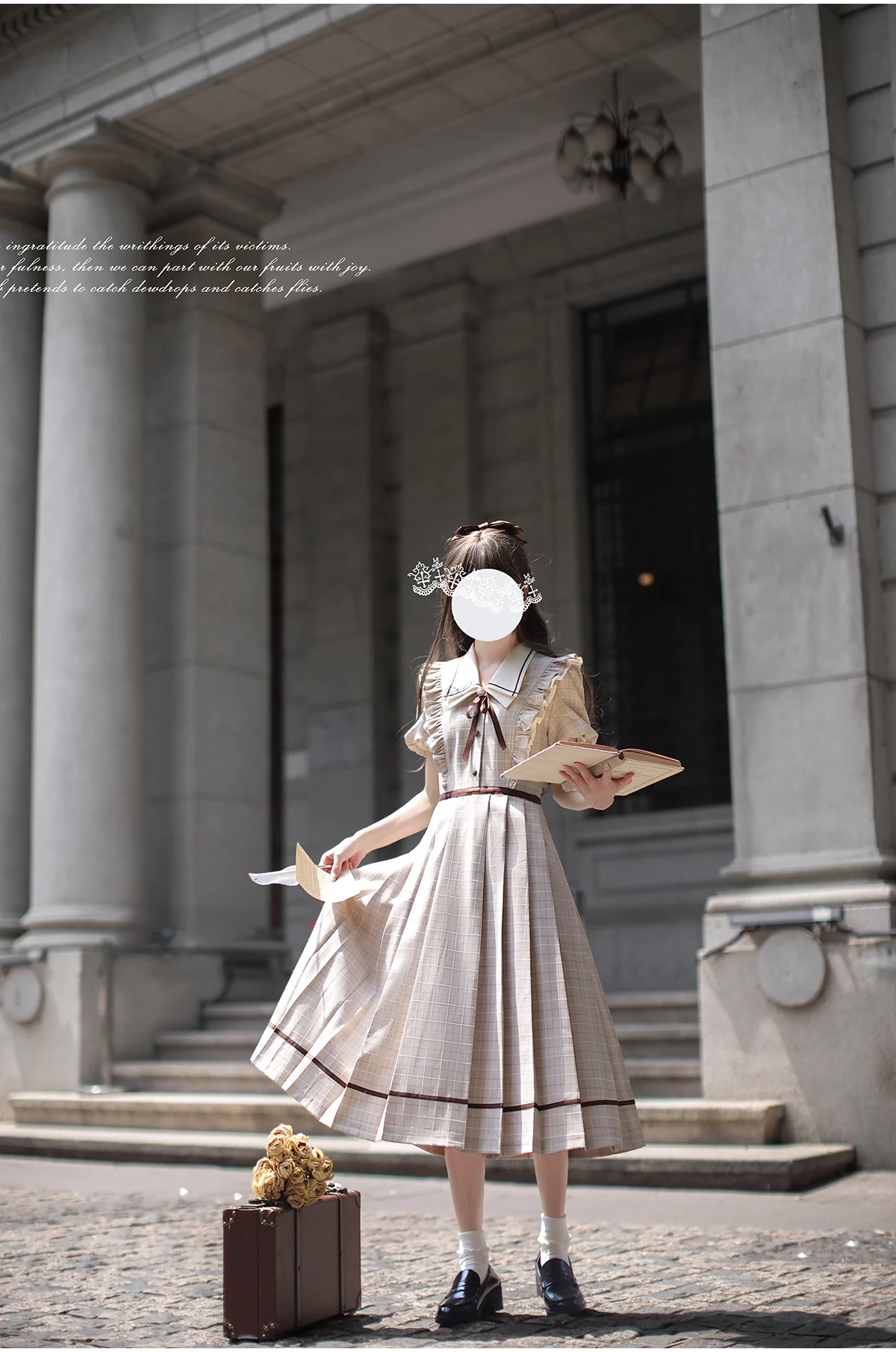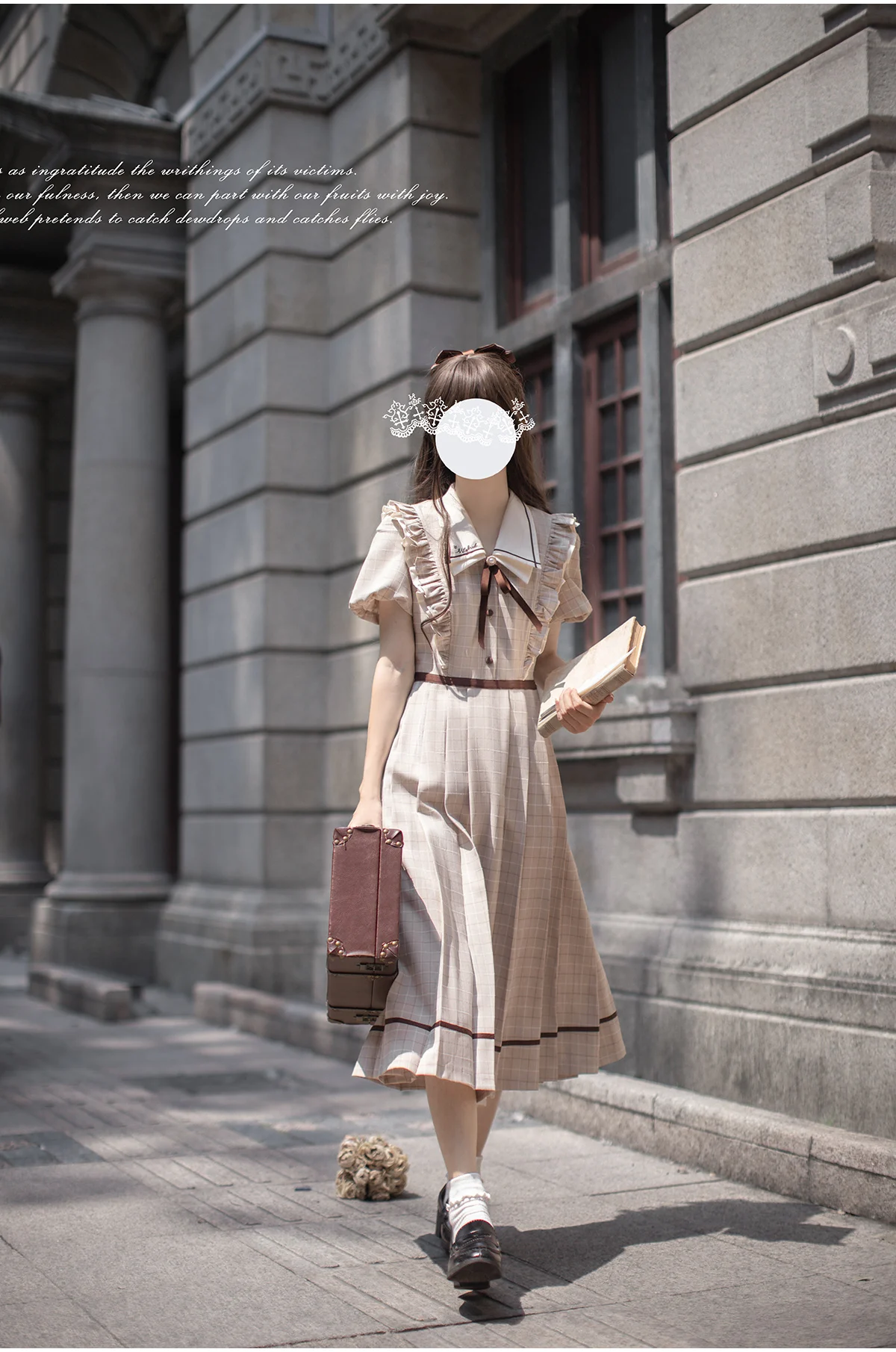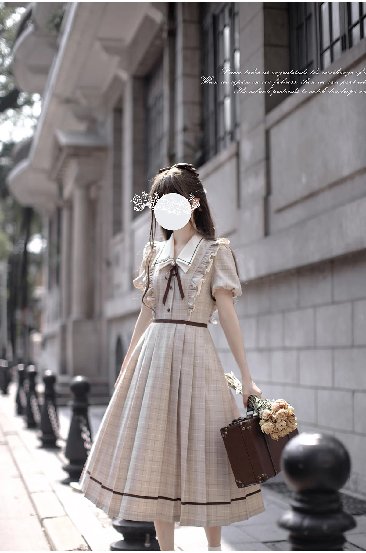 British Retro Elegant Princess Dress Summer Polo Collar Puff Sleeve Slim Pleated Dress for Women Pastoral Girl A-line Dresses