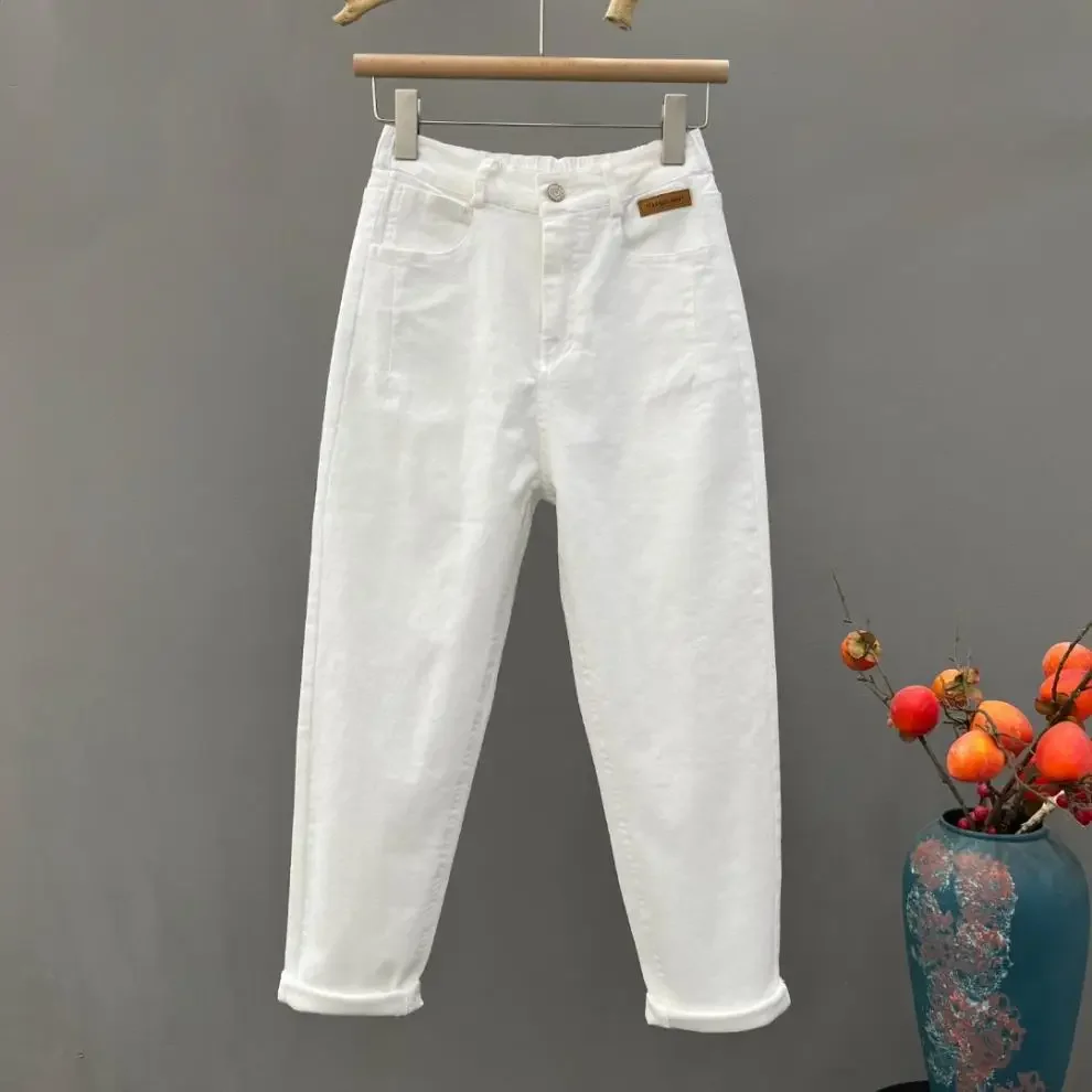 Casual High Waist Loose Fit Mom Jeans Women's New Style Versatile Elastic Waist Wide Leg Slimming Harem Dad Jeans