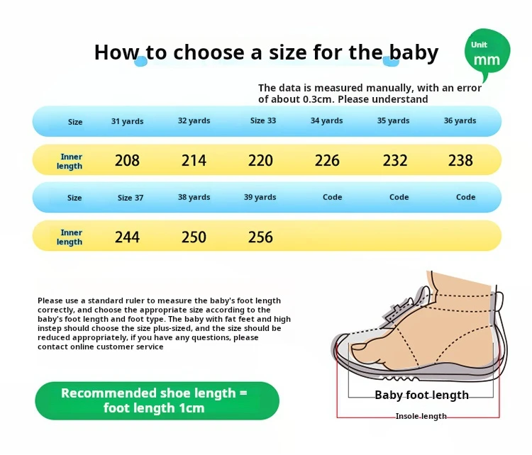 Foot Length + (0.5~1cm)=Inside length(cm)