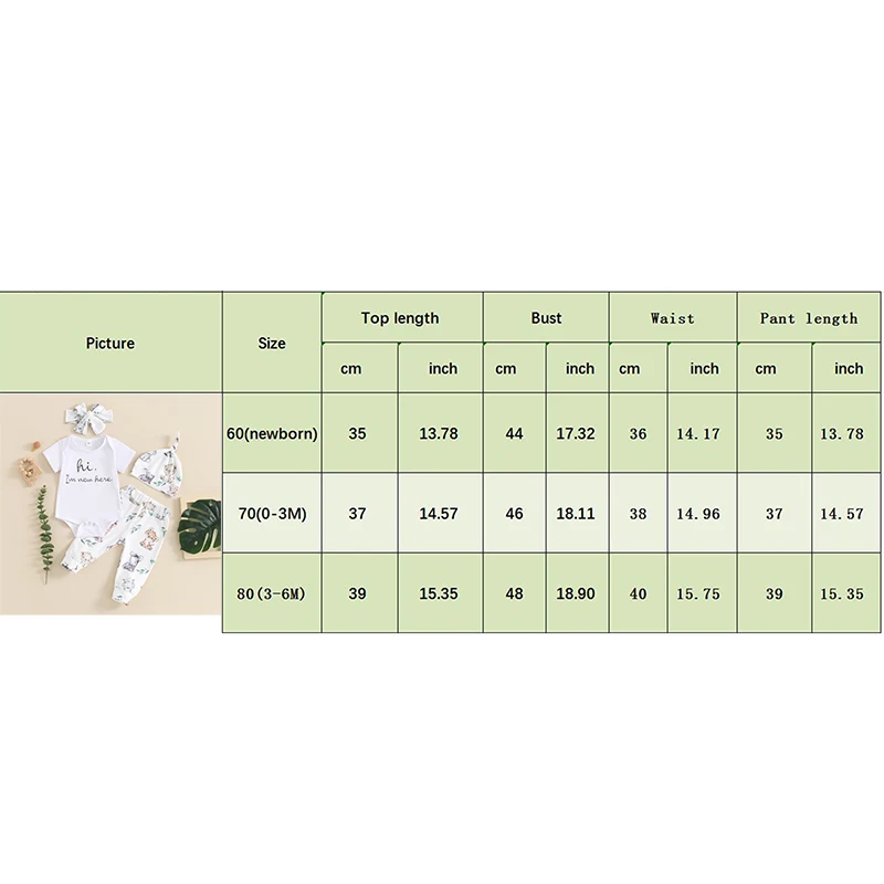 Baby Boys Girls Summer Outfits Short Sleeve Animal Print Romper + Pants + Headband + Hat Set Infant Clothes
