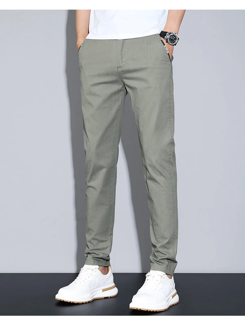 Cotton Thin Men's Business Casual Pants Summer Straight Slim Fit Fashion Stretch Solid Trousers Korean Men's Pants Size 28-38