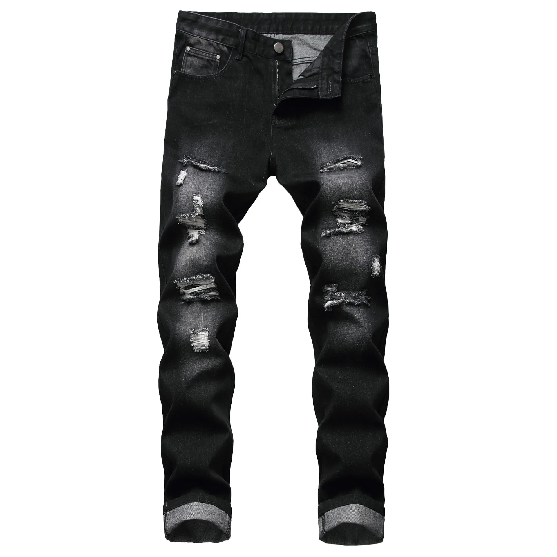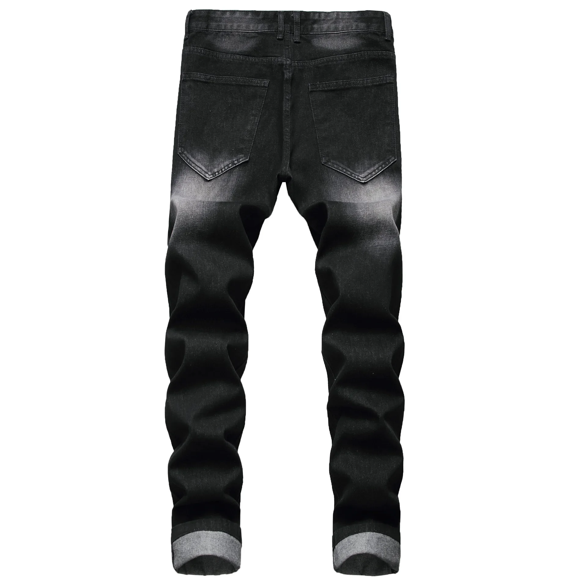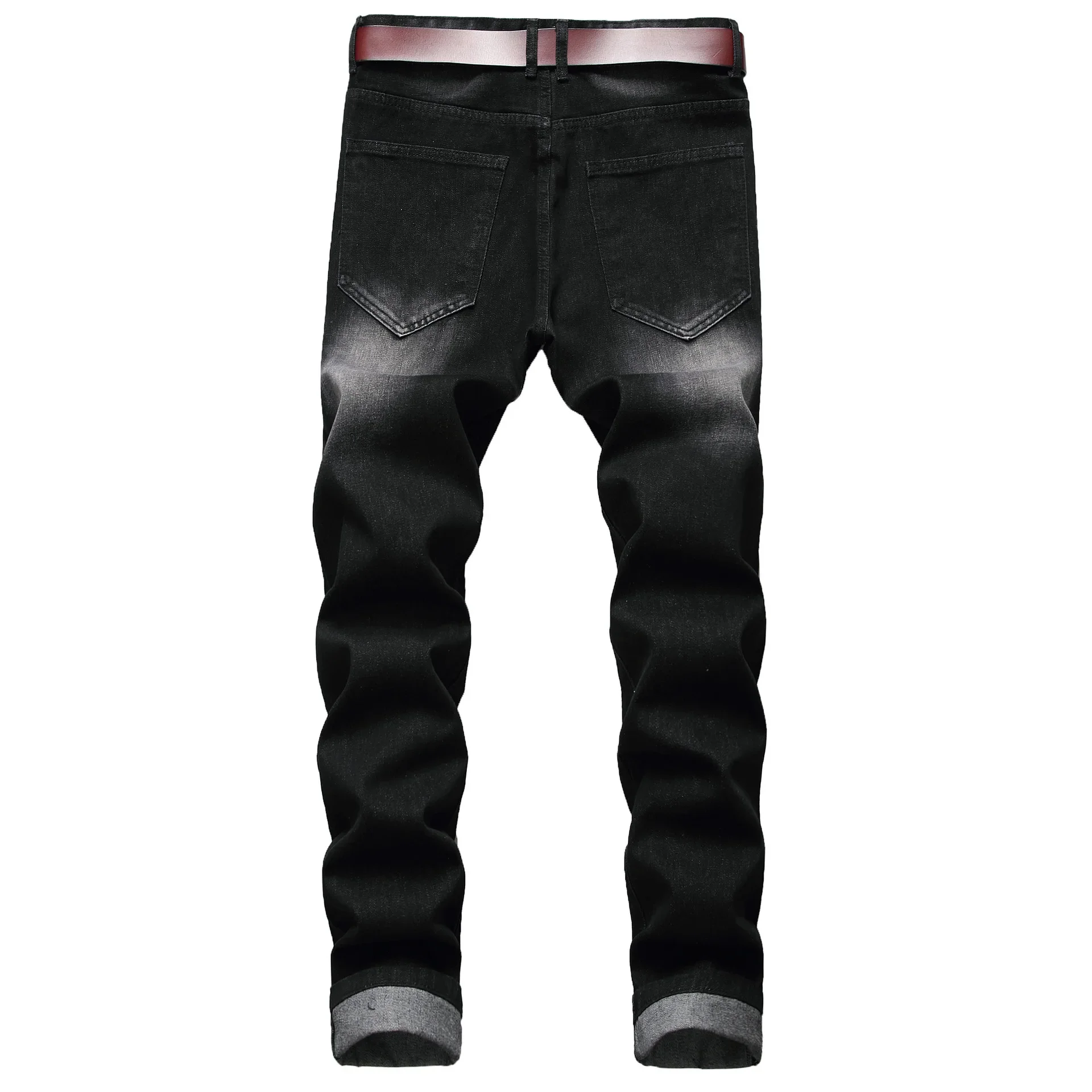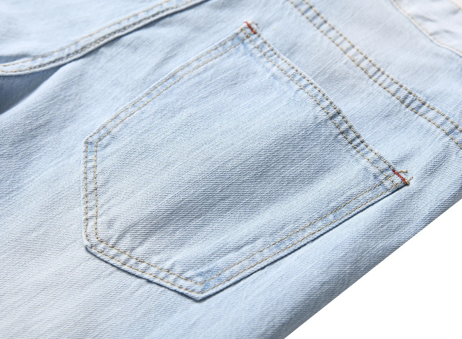 Cross-Border Men's Wear Ripped Straight-Leg Slim Fit Smooths Your Silhouette No Stretch Jeans Light-Colored Denim Trousers Amazo