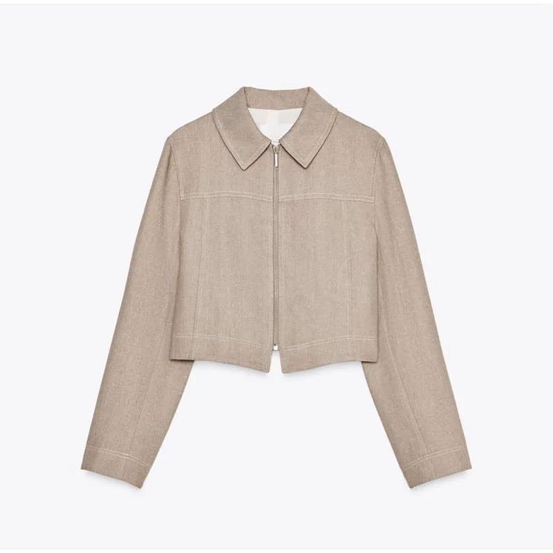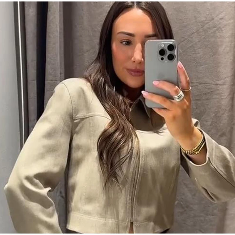 2. Stylish Cropped Jacket The cropped jacket features a neat collar and long sleeves, presenting a modern and chic look. Its cropped length helps to create a flattering silhouette by accentuating the waist and elongating the legs visually.
