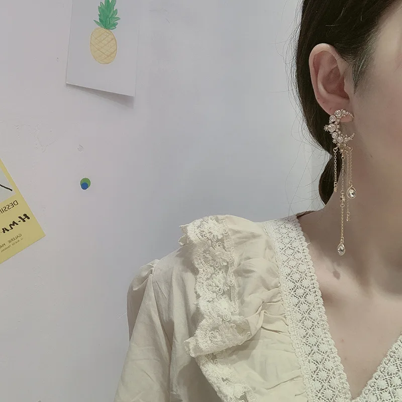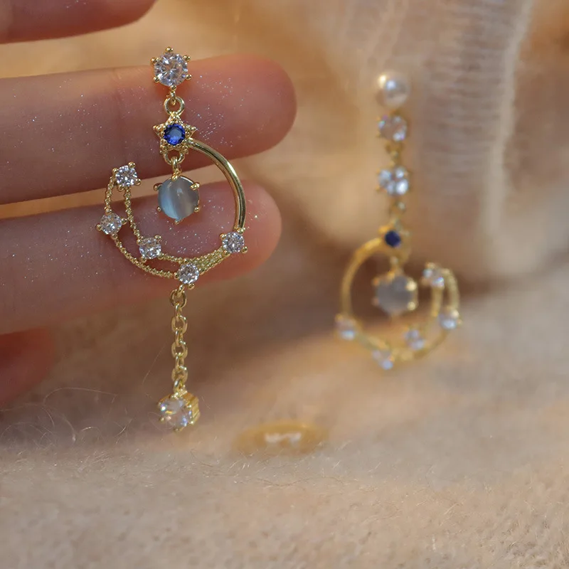 Pearl Moon Asymmetric Water Drop Earrings For Women