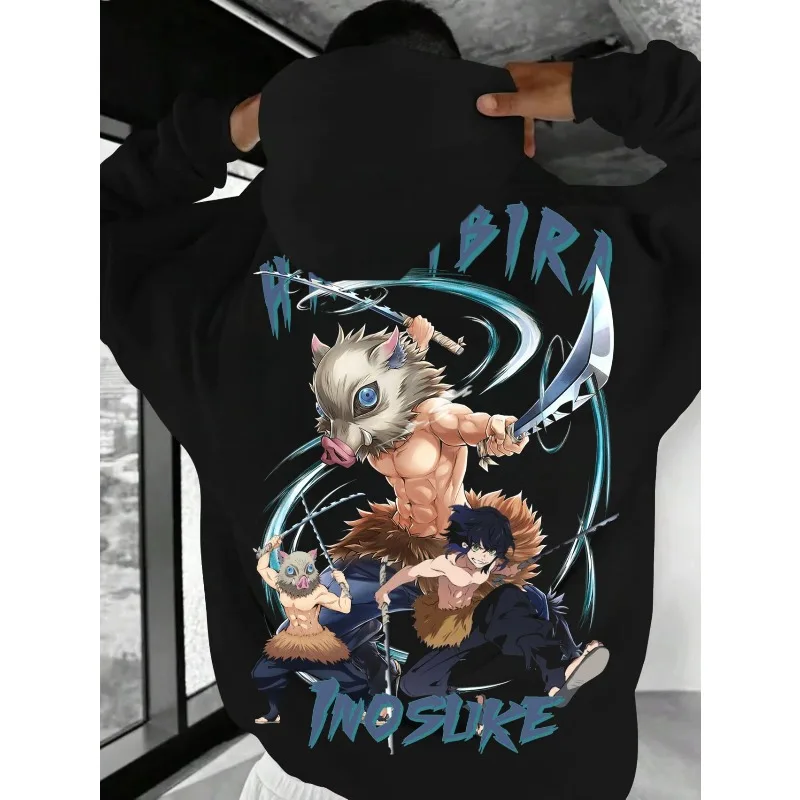Harajuku Japan Anime Demon Slayer Men Women Hoodies Plus Size Sweatshirt Retro Inosuke Hashibira Unisex Long Sleeve Pullover