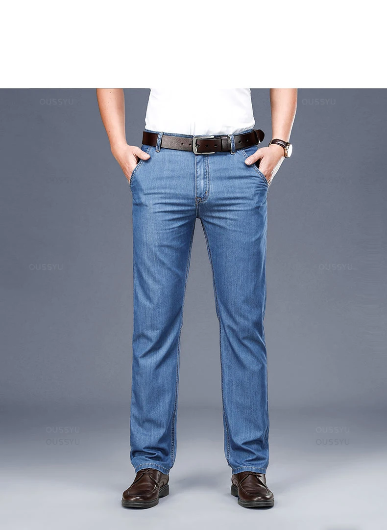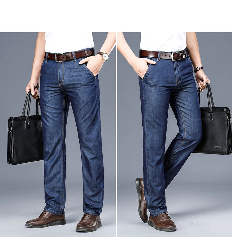 High Quality Brand Clothing Soft Modal Fabric Men's Jeans Classic Business Straight Denim Pants Work Trousers Male Plus Size 40