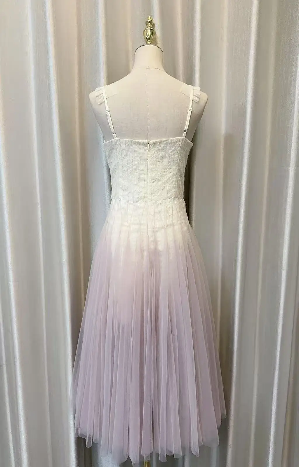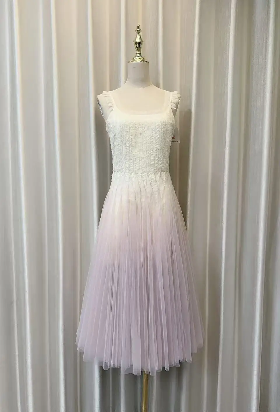 High Quality Gradient Camisole Dresses Spring Women Sleeveless Square Neck Mesh Dress Summer High Waist Zipper Knee Length Dress