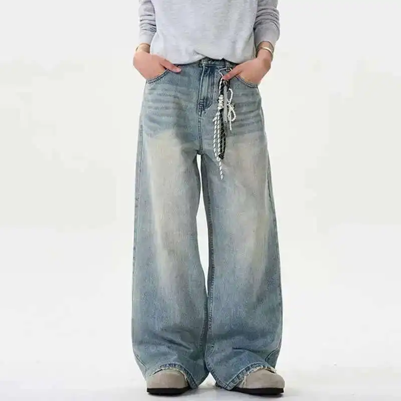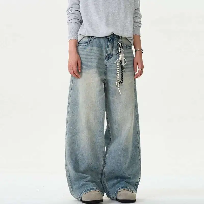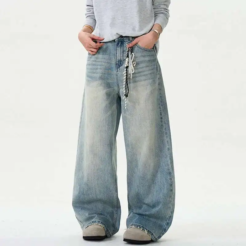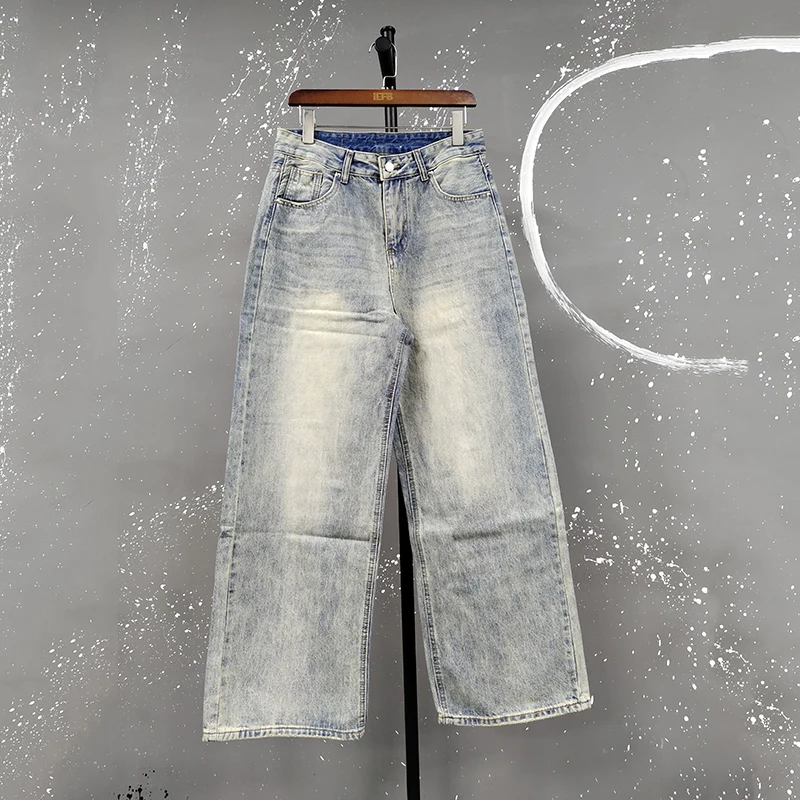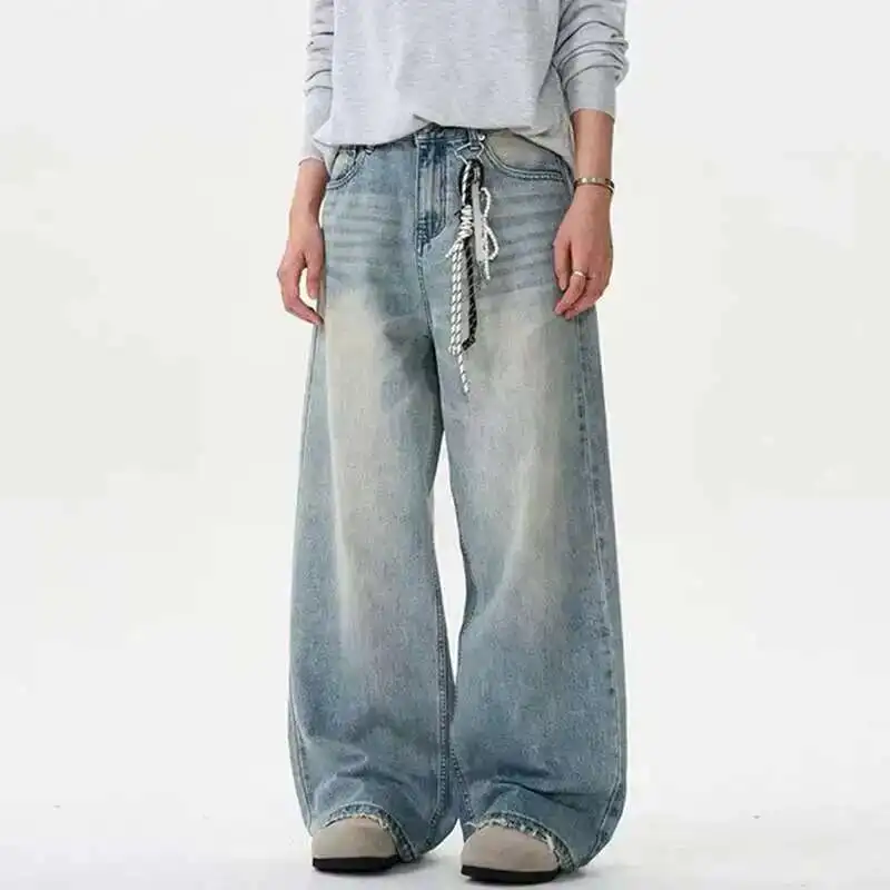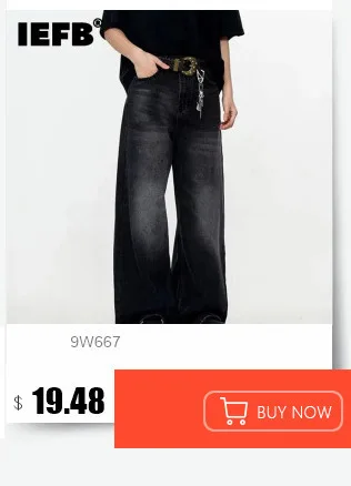 IEFB Distressed Jeans Solid Color Washing Summer Men Trousers Loose Wide Leg Casual Straight Moustache Effect Male Bottom 9W665