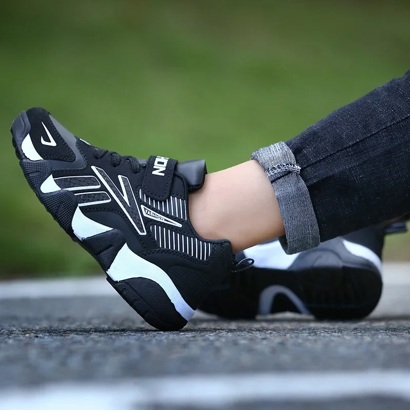 Kids Fashion Sneakers Boys Tennis Shoes Comfortable Leather Running Shoes Lightweight Outdoor Children's Sports Walking Shoes