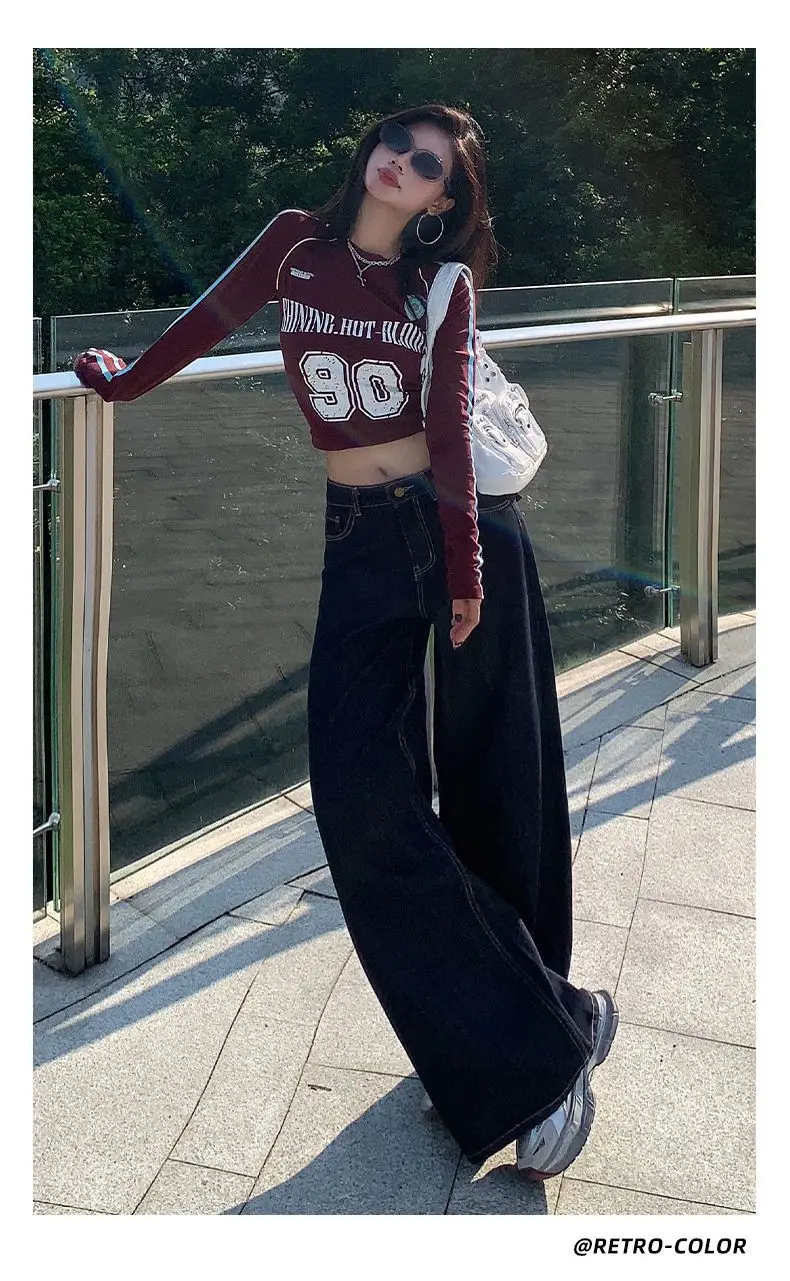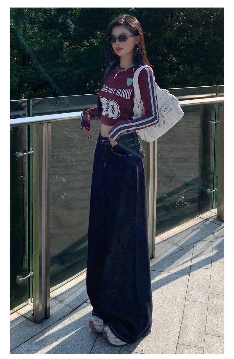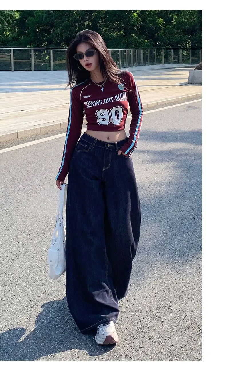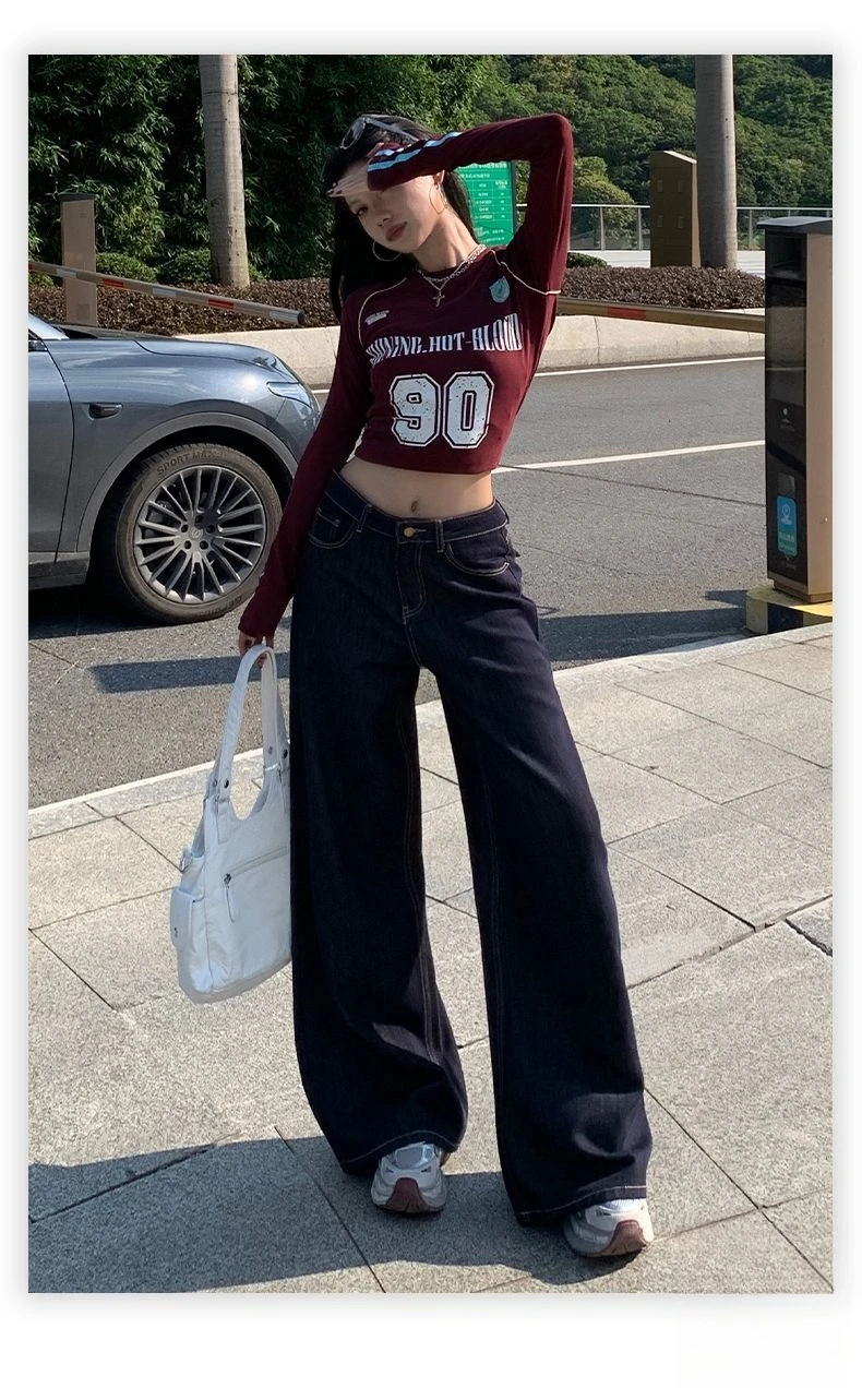 Lucyever Vintage Washed Wide Leg Jeans Women Deep Blue High Waist Baggy Y2K Denim Pants Lady Streetwear Casual Straight Trousers