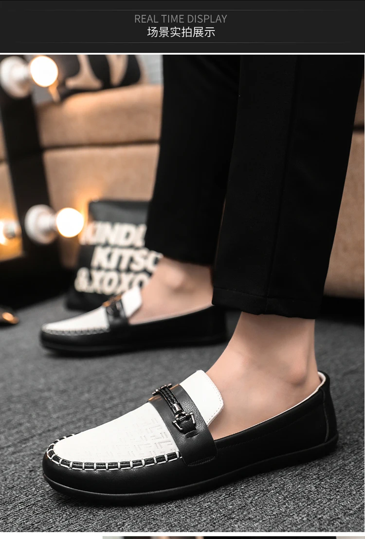 Men leather slip on loafers for men breathable moccasins casual driving boat shoes