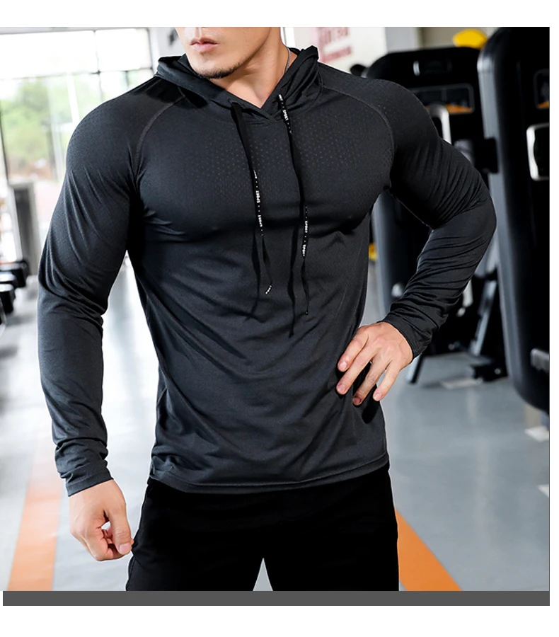 Mens Fitness Tracksuit Running Sport Hoodie Gym Joggers Hooded Outdoor Workout Shirts Tops Clothing Muscle Training Sweatshirt