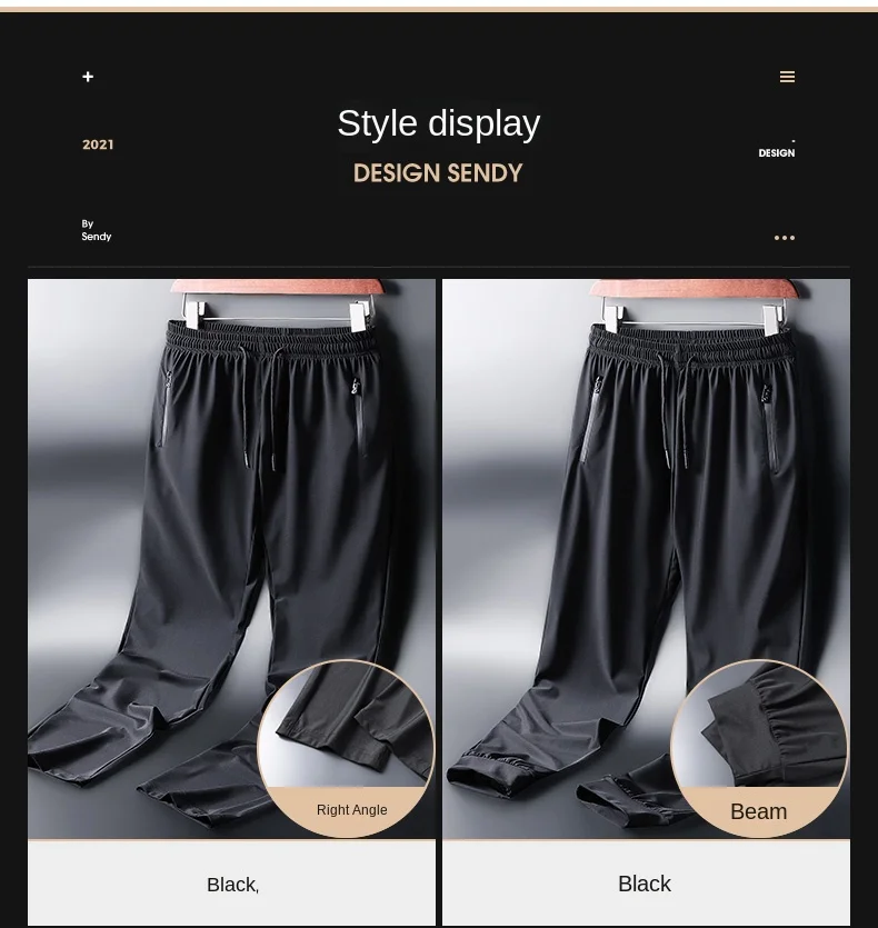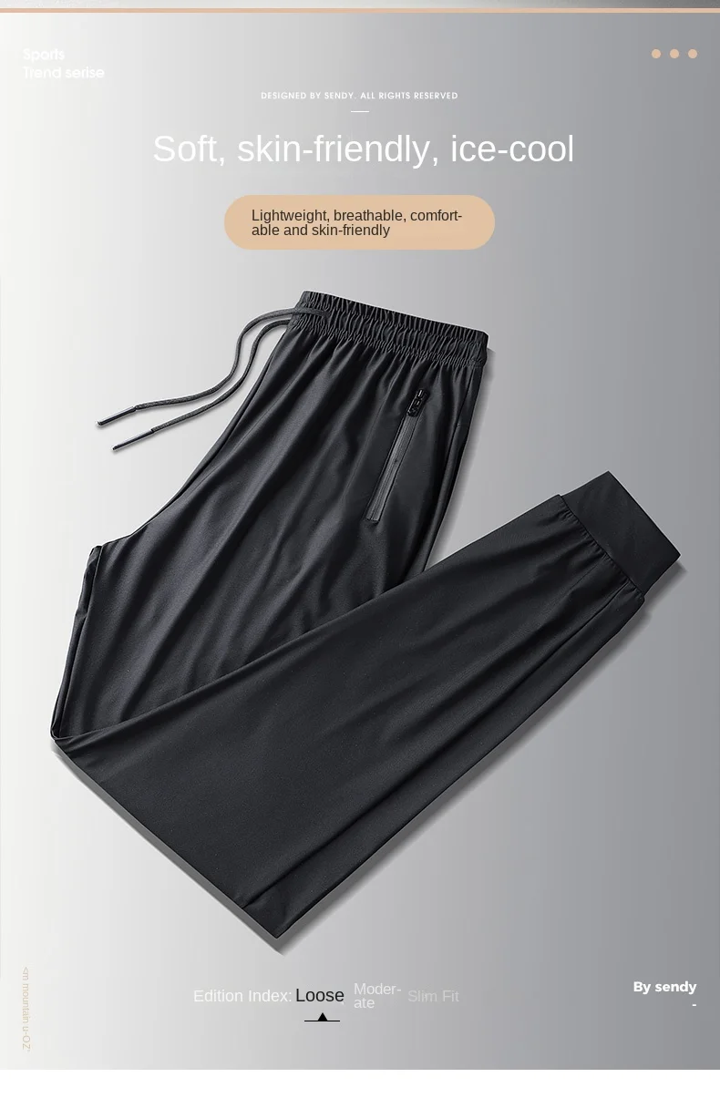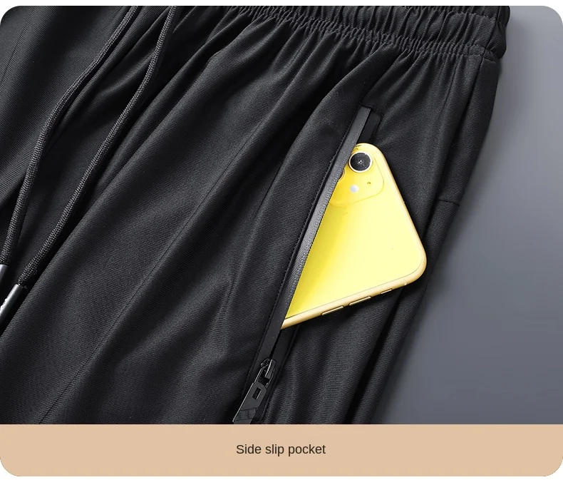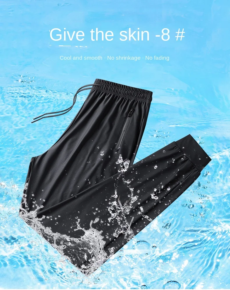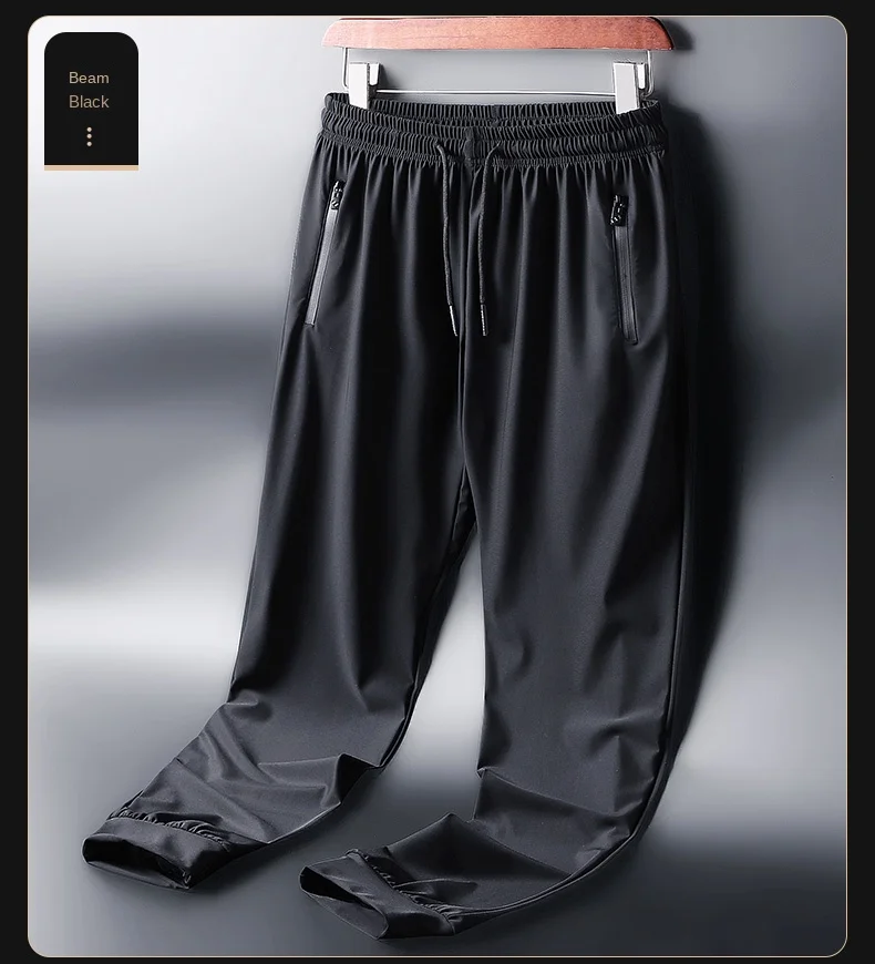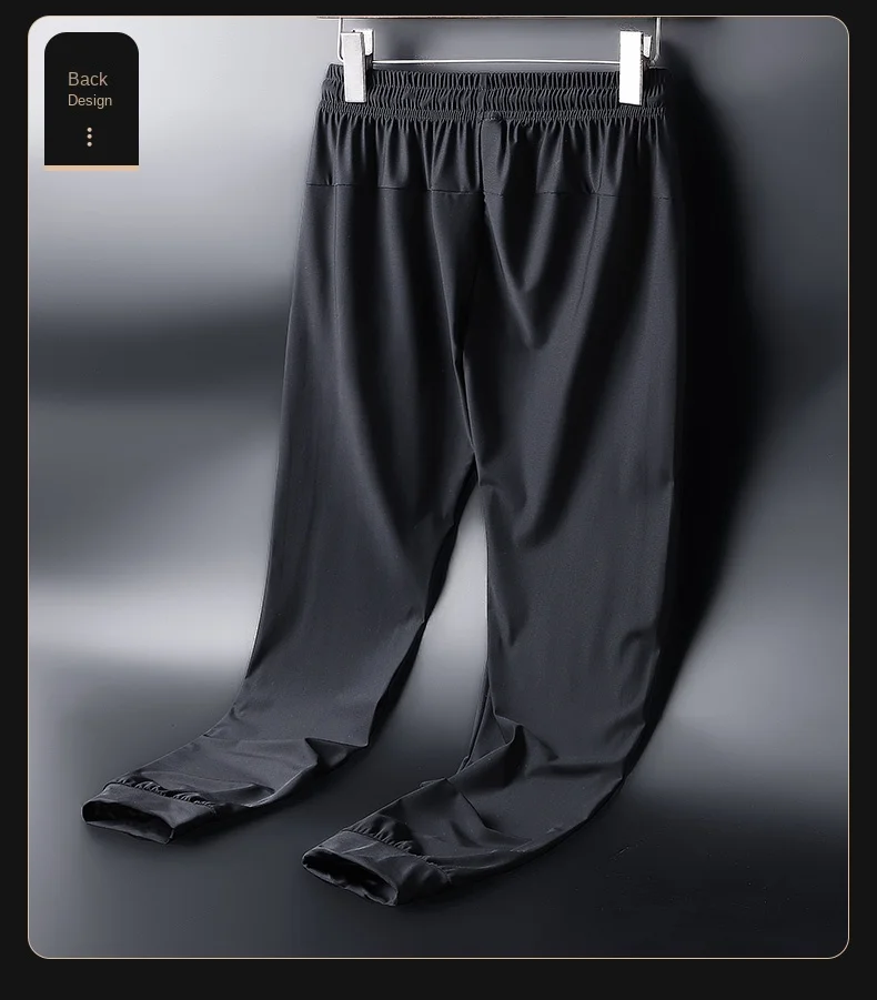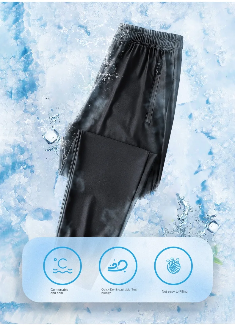 Men's Ice Silk Quick Drying Long Pants Summer Thin Breathable Loose Fitting Outdoor Running Sports Fitness Straight Leg Pants