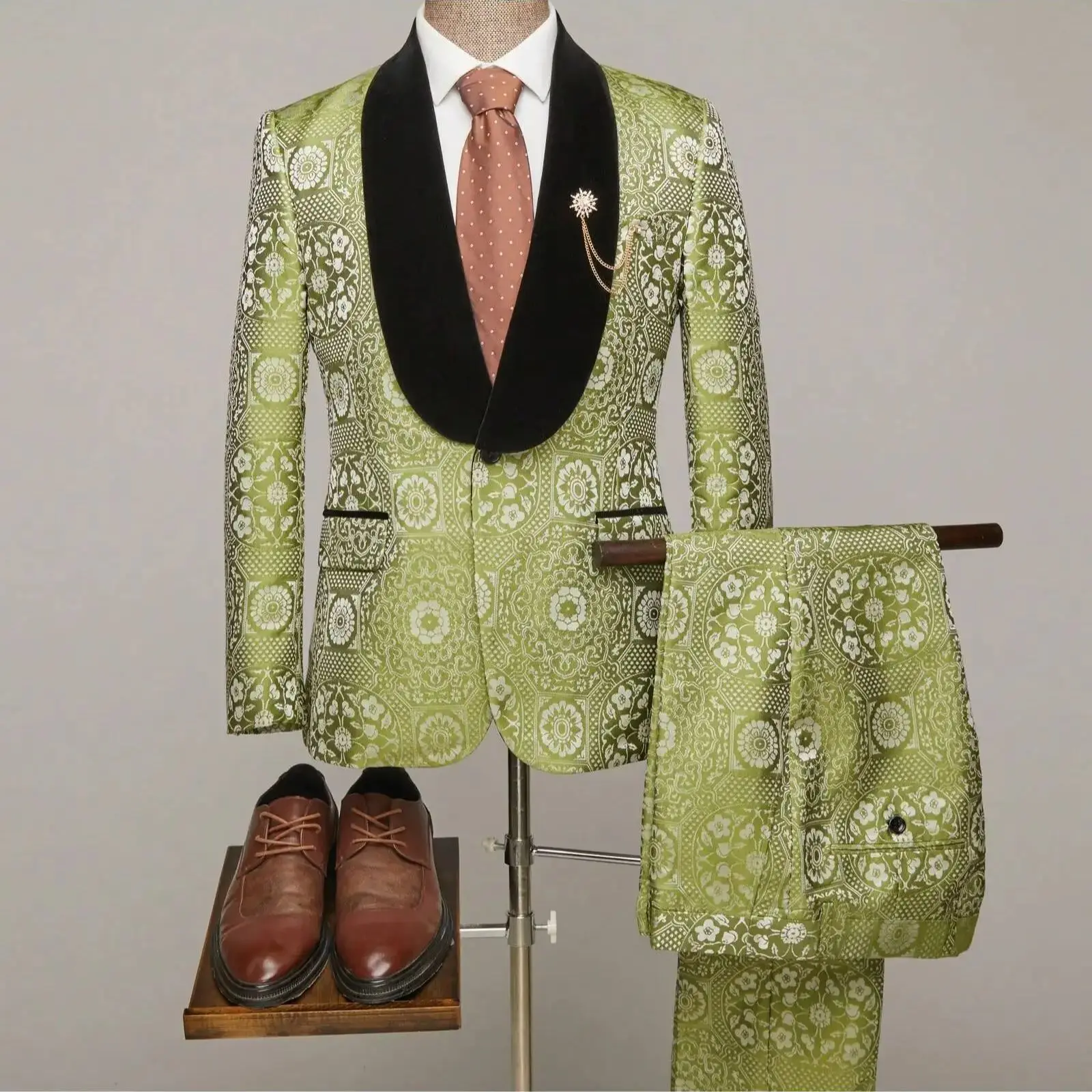 Mens Suits Tuxedo Suit Set Slim Fit 2 Piece Luxurious Party Dinner Jacket Pants