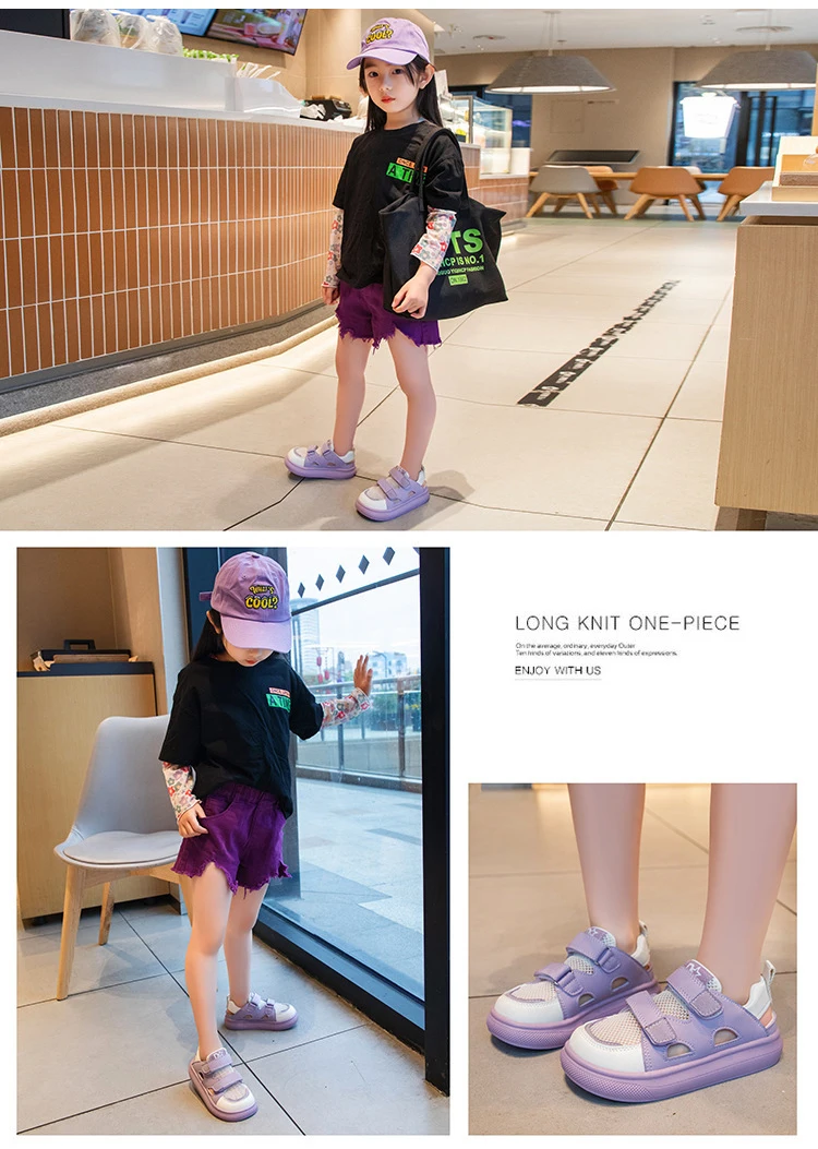 Oulylan Summer Hollowed Out Mesh Sneakers Fashion Children's Breathable Board Shoes Girls Casual Antiskid Running Footwear