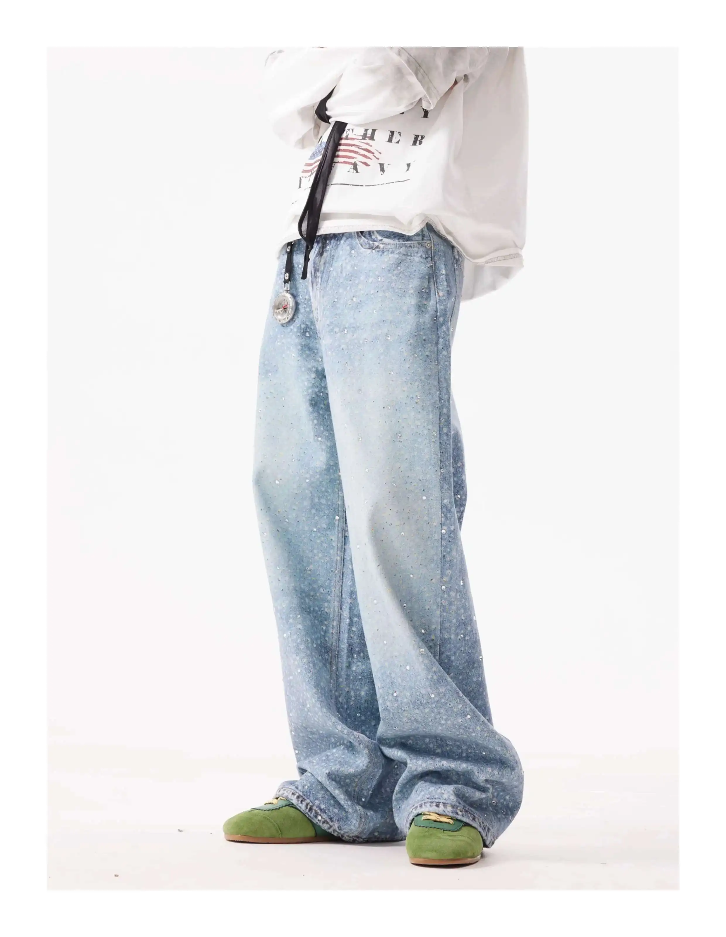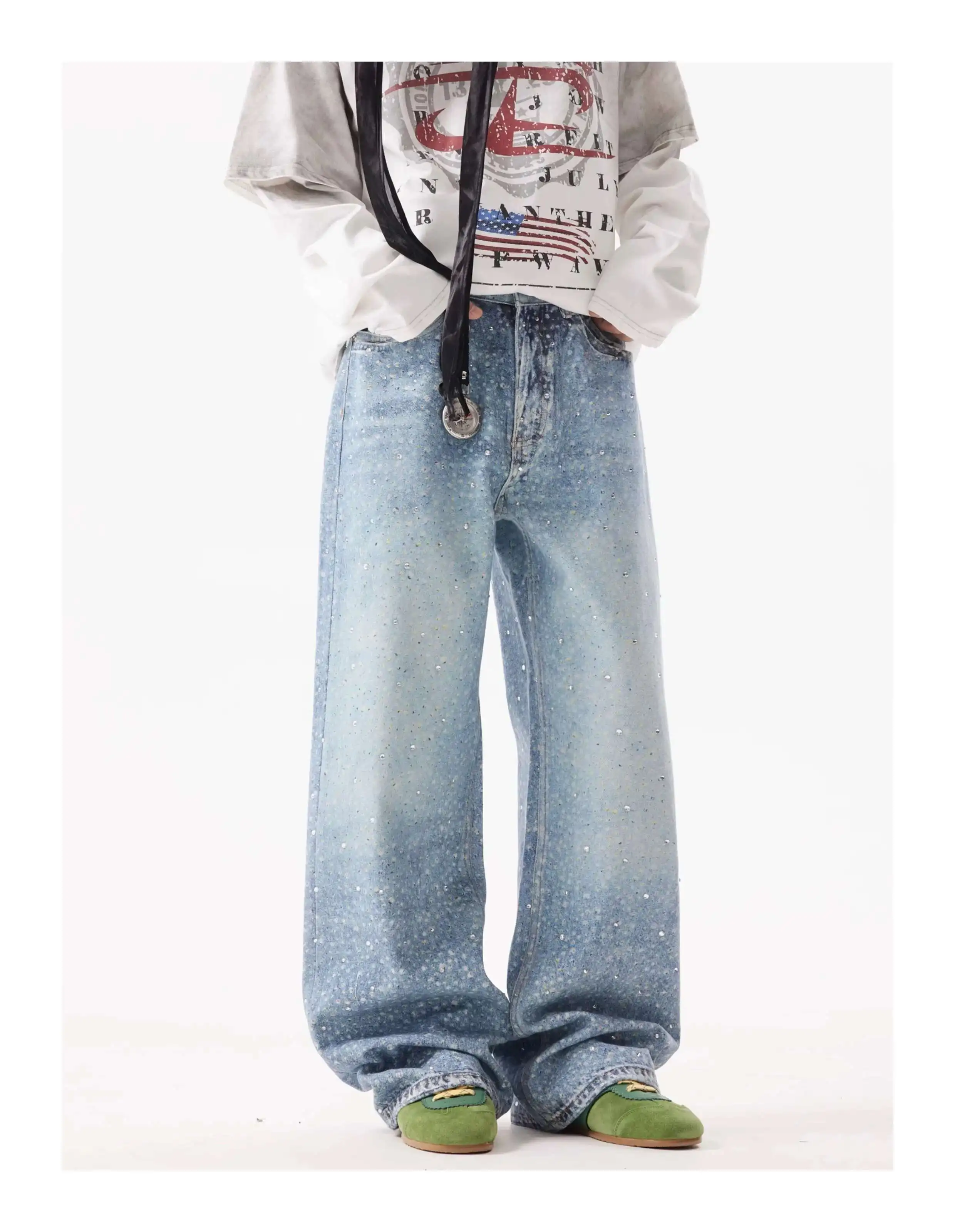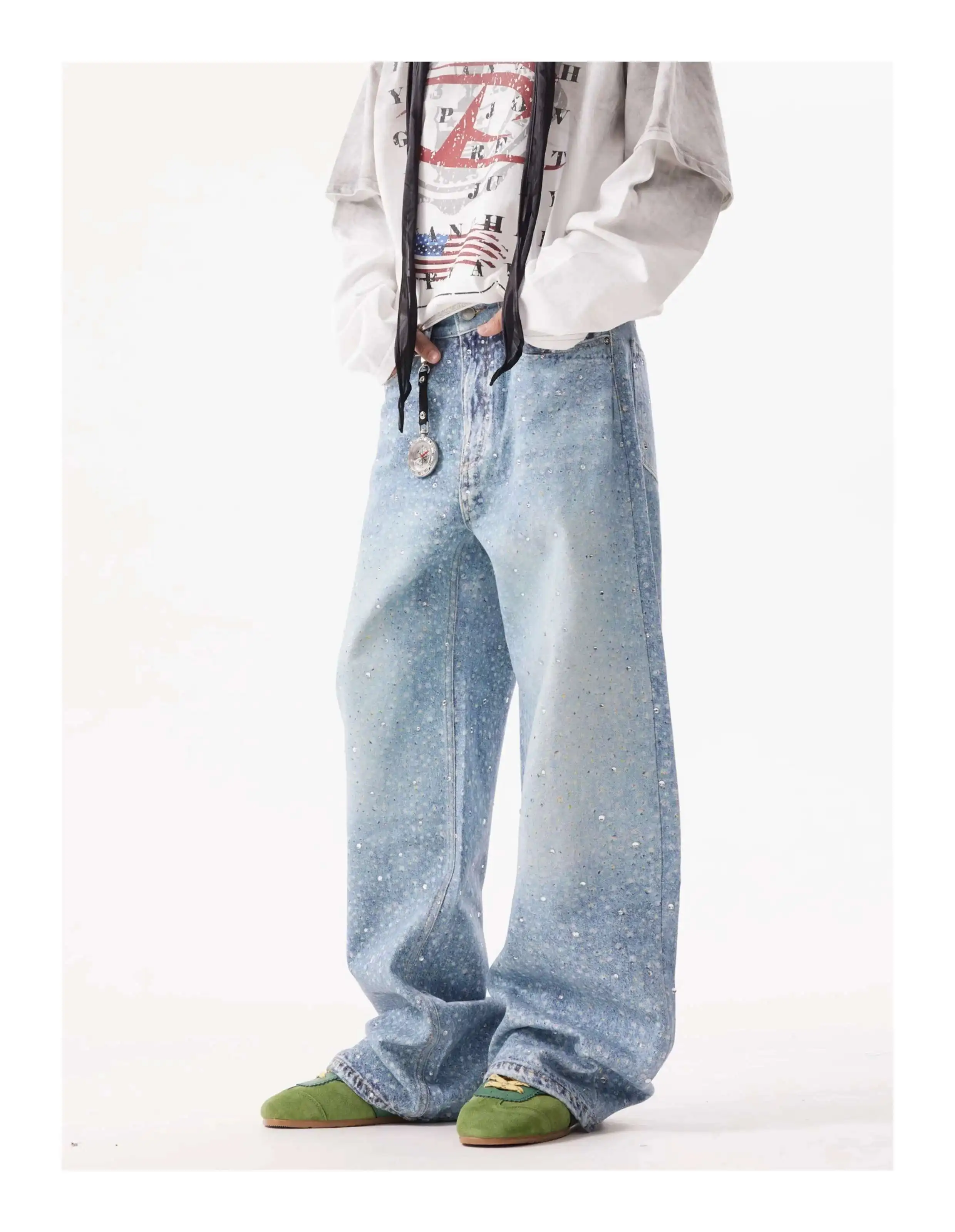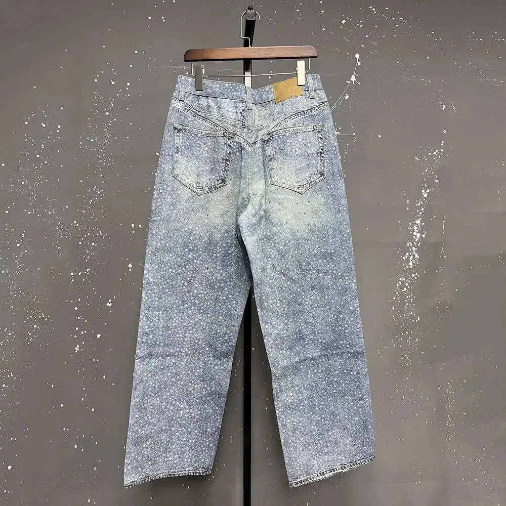 PFNW American Rhinestone Printed Design Vintage Jeans Men's Streetwear Hip Hop Mens Clothing Loose Wide Leg Pants Trendy 28W4644