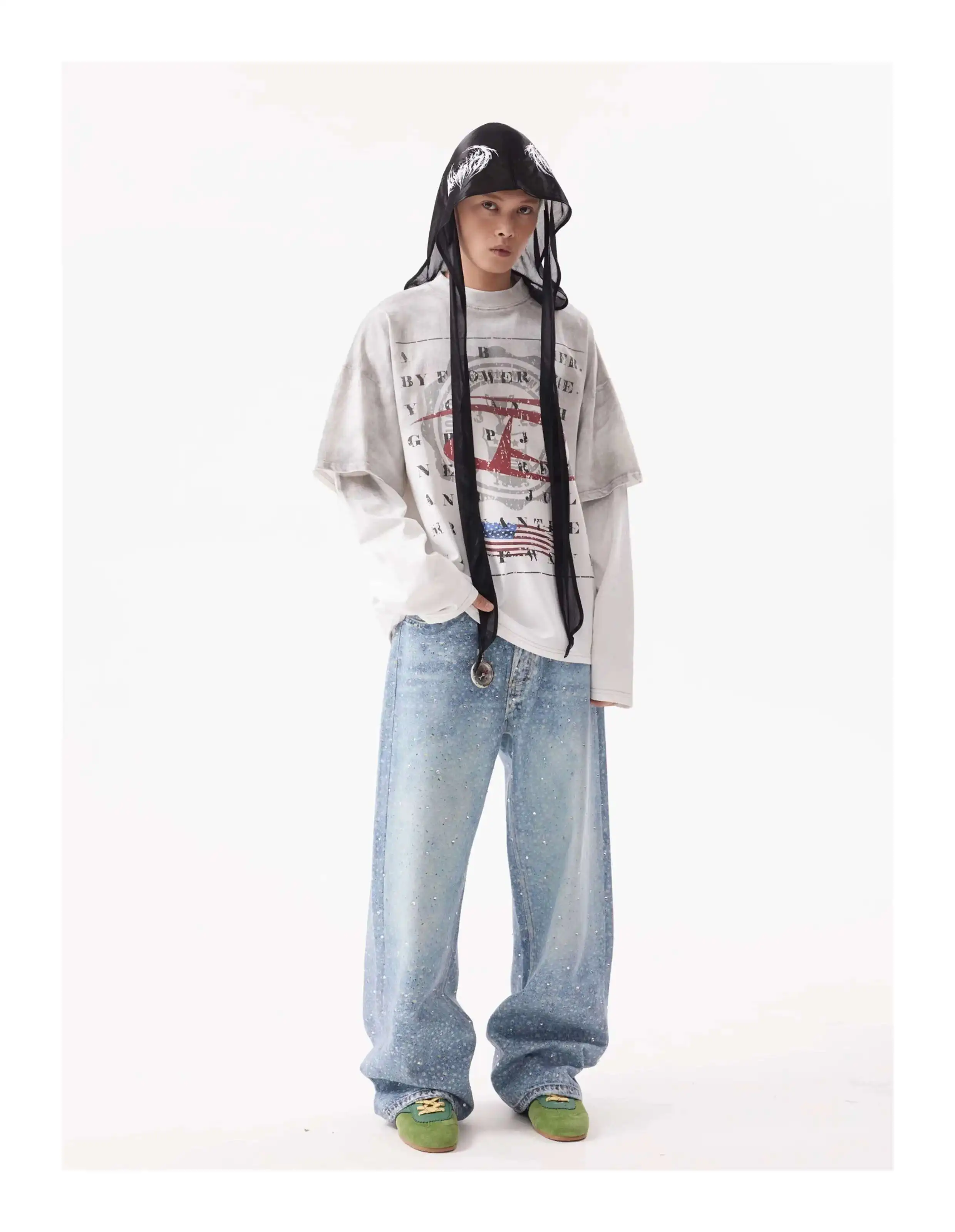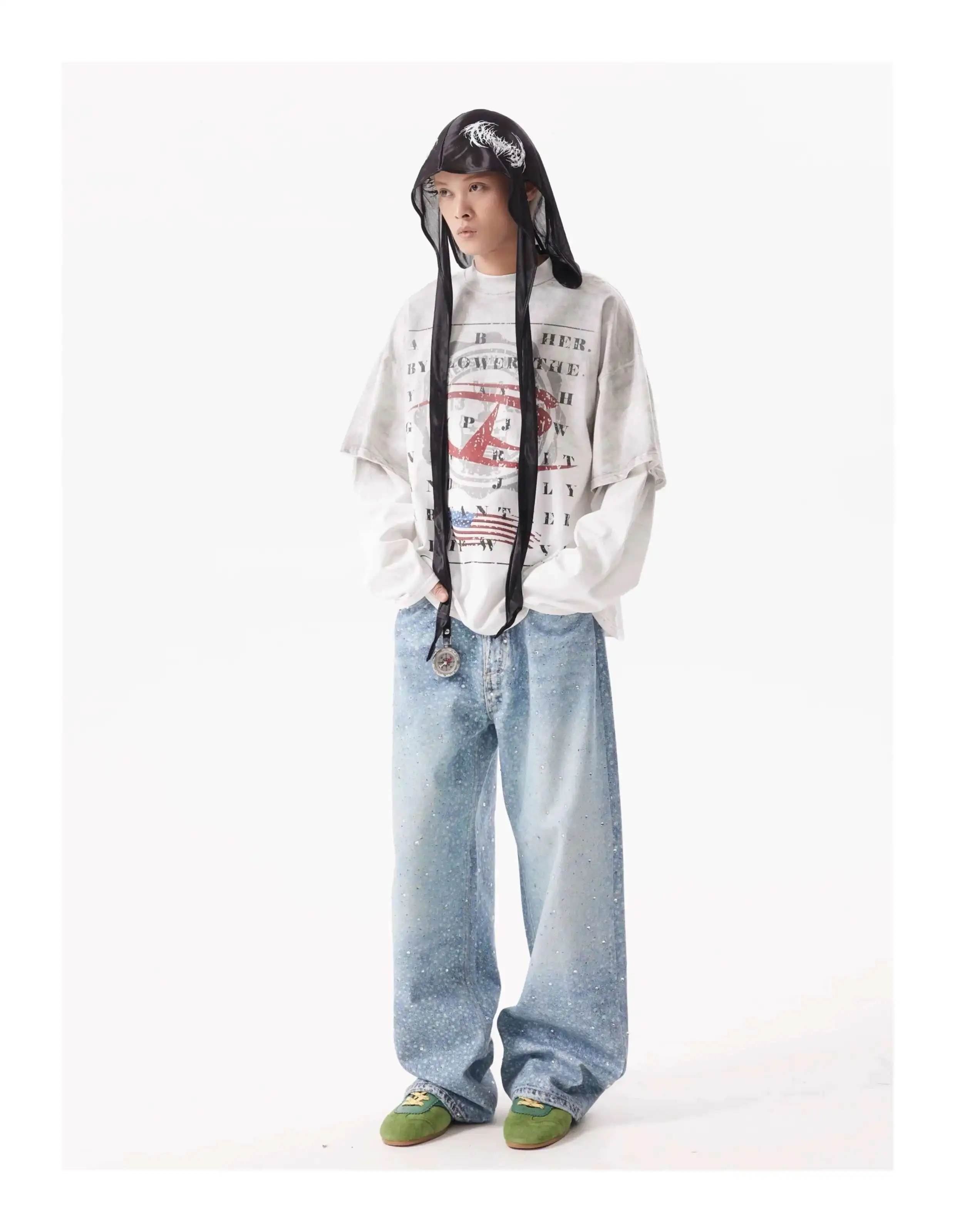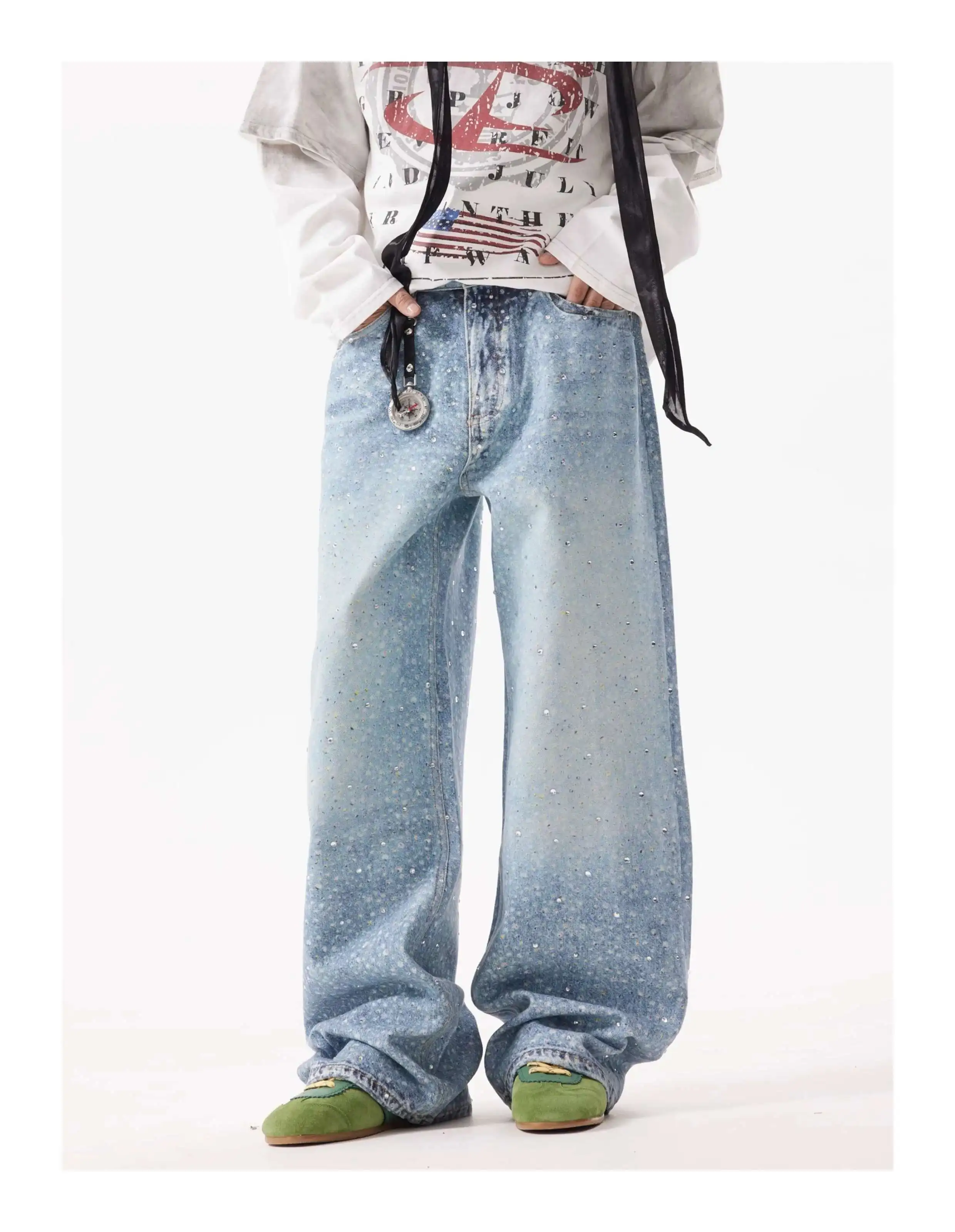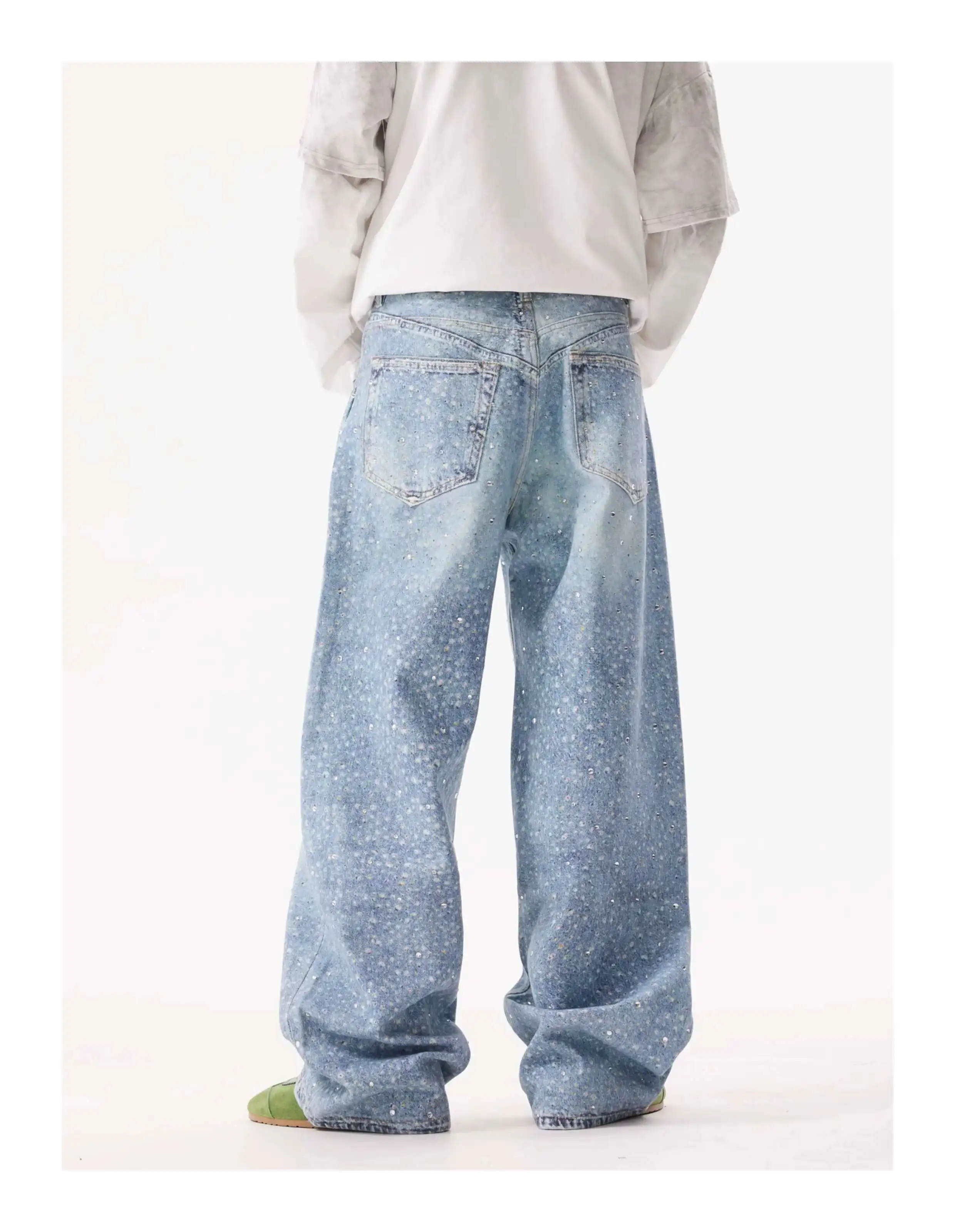 PFNW American Rhinestone Printed Design Vintage Jeans Men's Streetwear Hip Hop Mens Clothing Loose Wide Leg Pants Trendy 28W4644