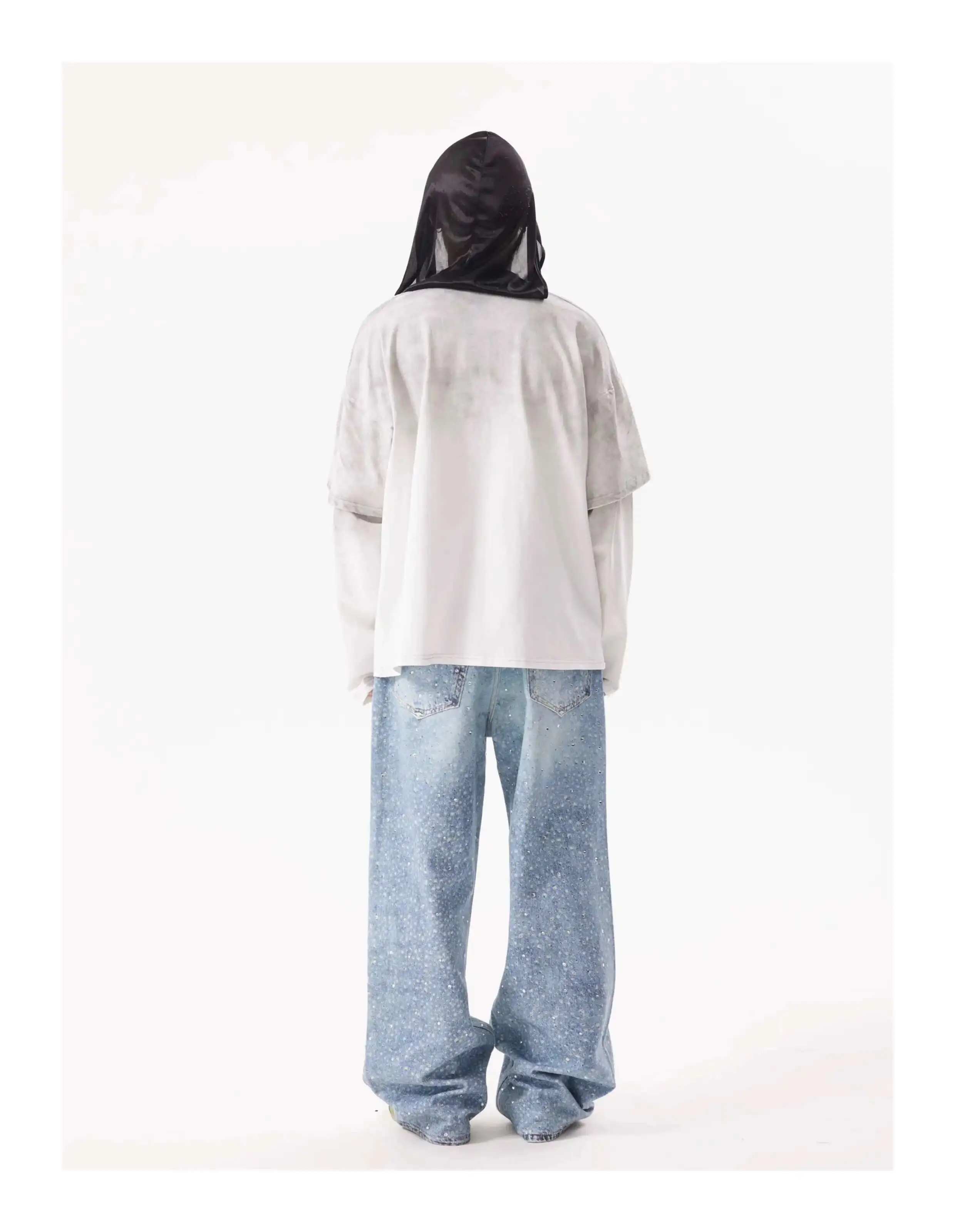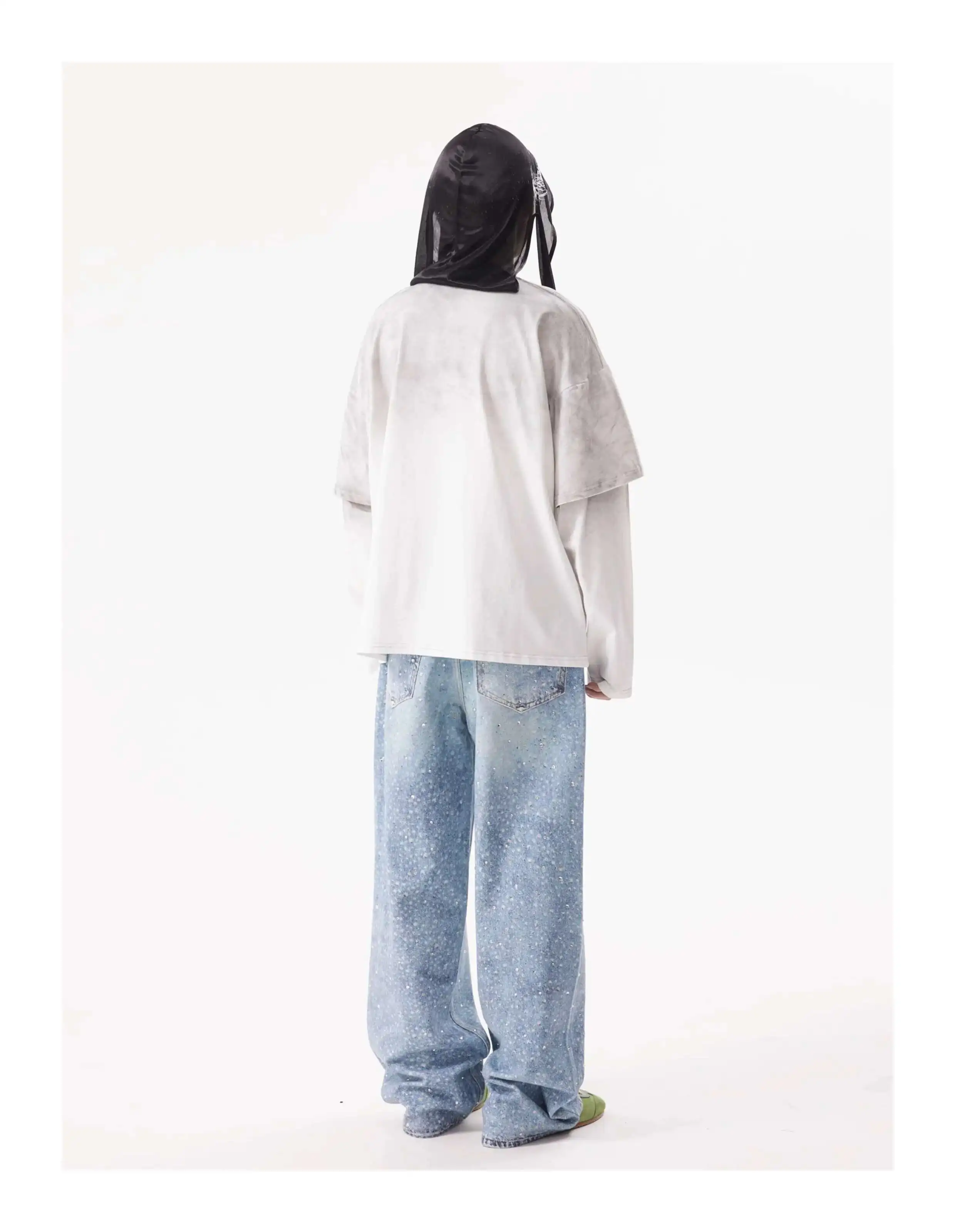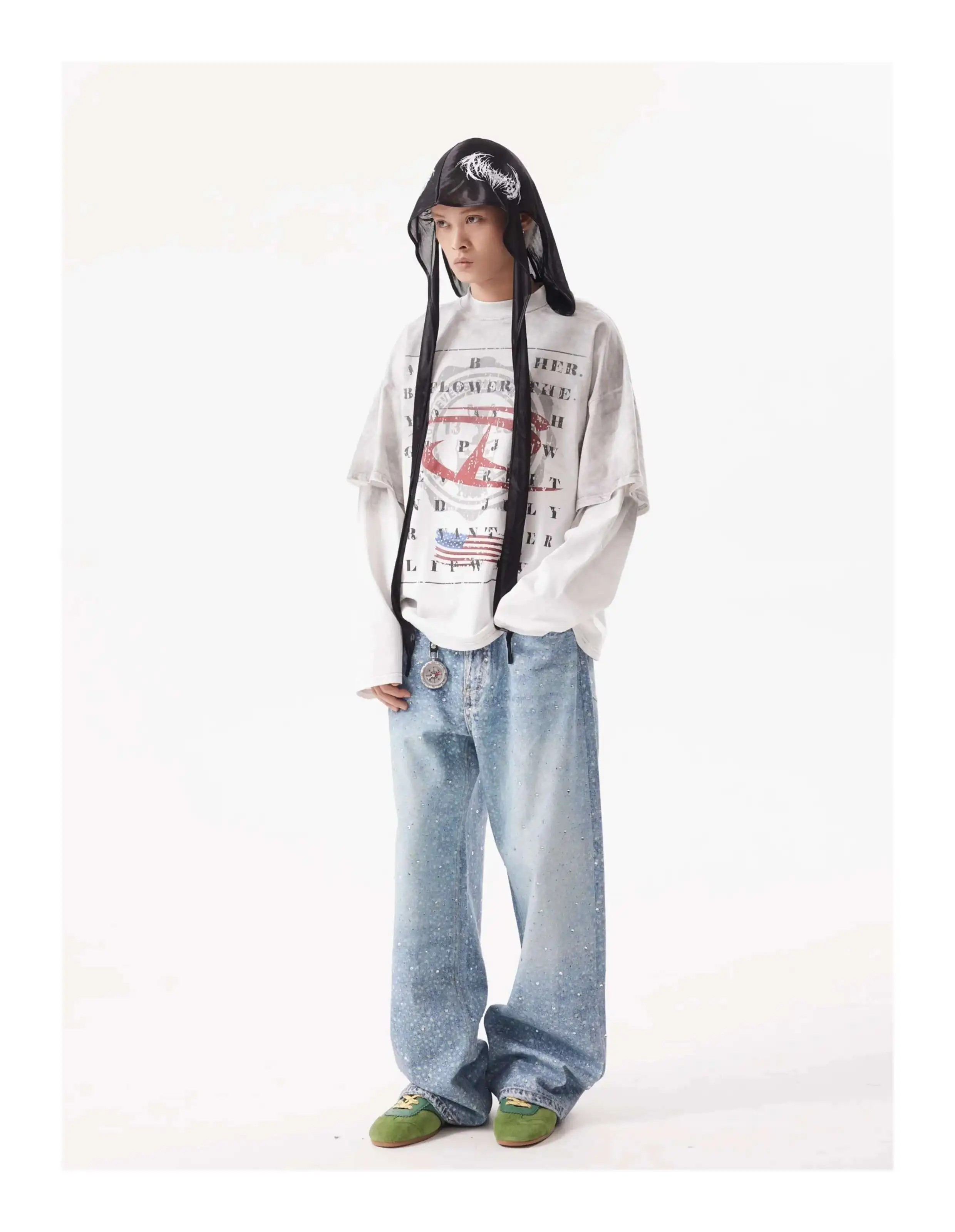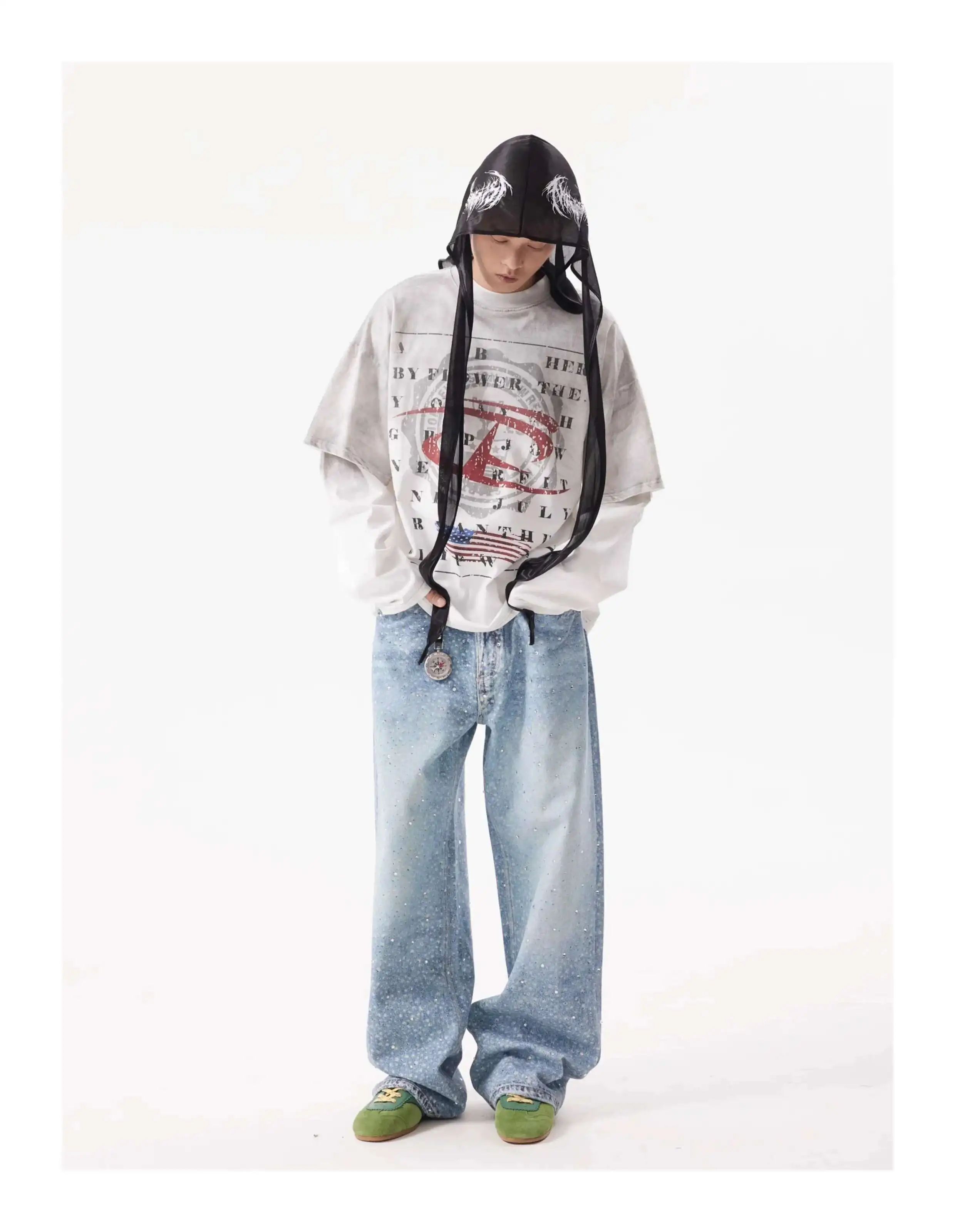 PFNW American Rhinestone Printed Design Vintage Jeans Men's Streetwear Hip Hop Mens Clothing Loose Wide Leg Pants Trendy 28W4644