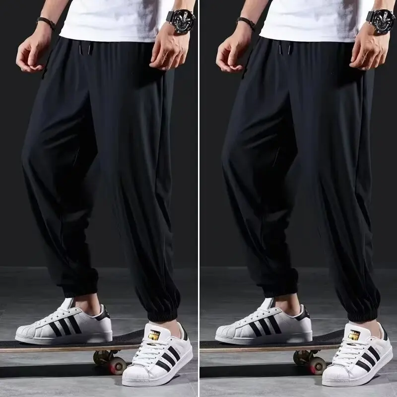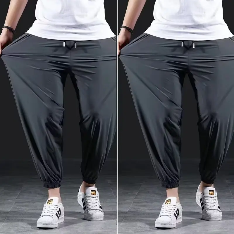 Plus Size Casual Men Pants Summer Breathable Ice Silk Quick Drying Thin Elasticity Sports Running Men Cropped Pants
