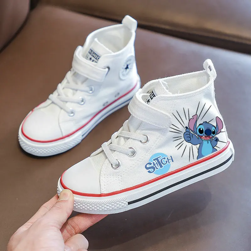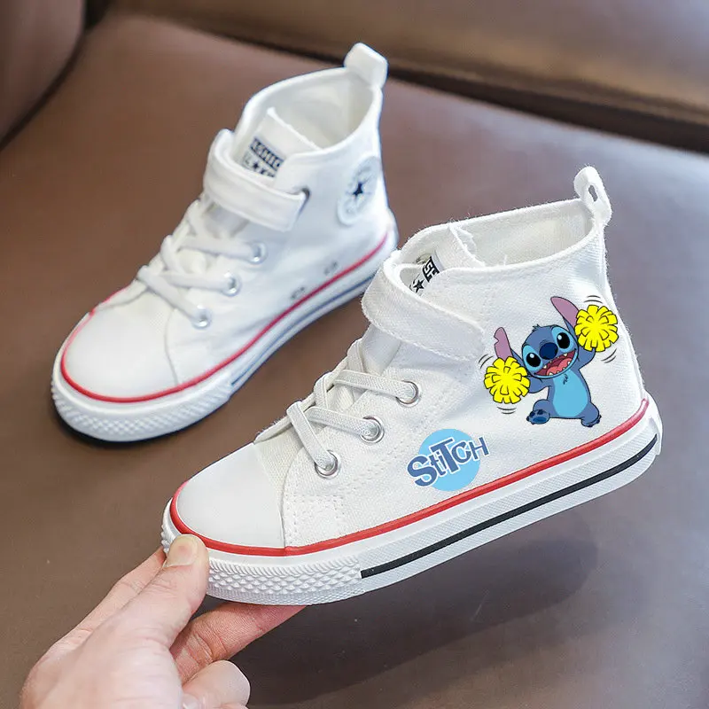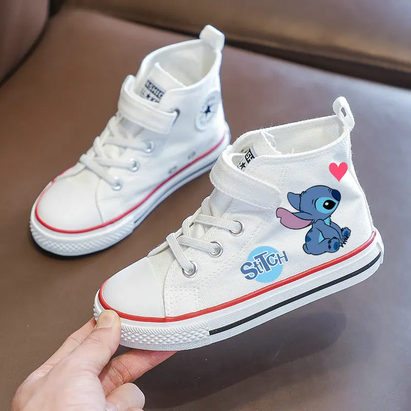 Stitch Children High Top Canvas Shoes Cartoon Stitch Kids Canvas Tennis Shoes Girls Boys White Casual Sneakers Size 25-36