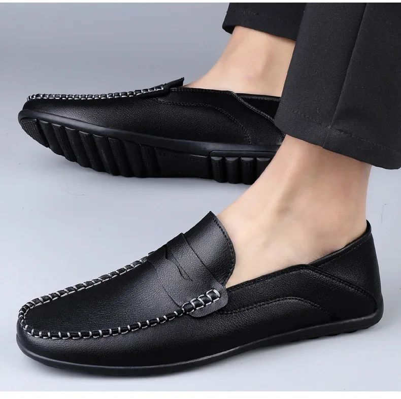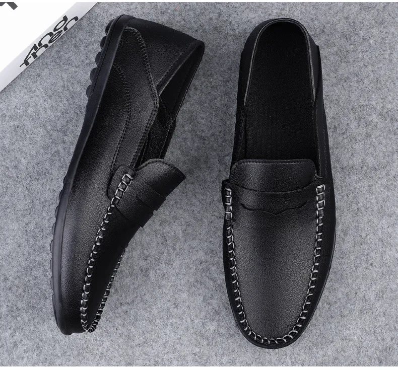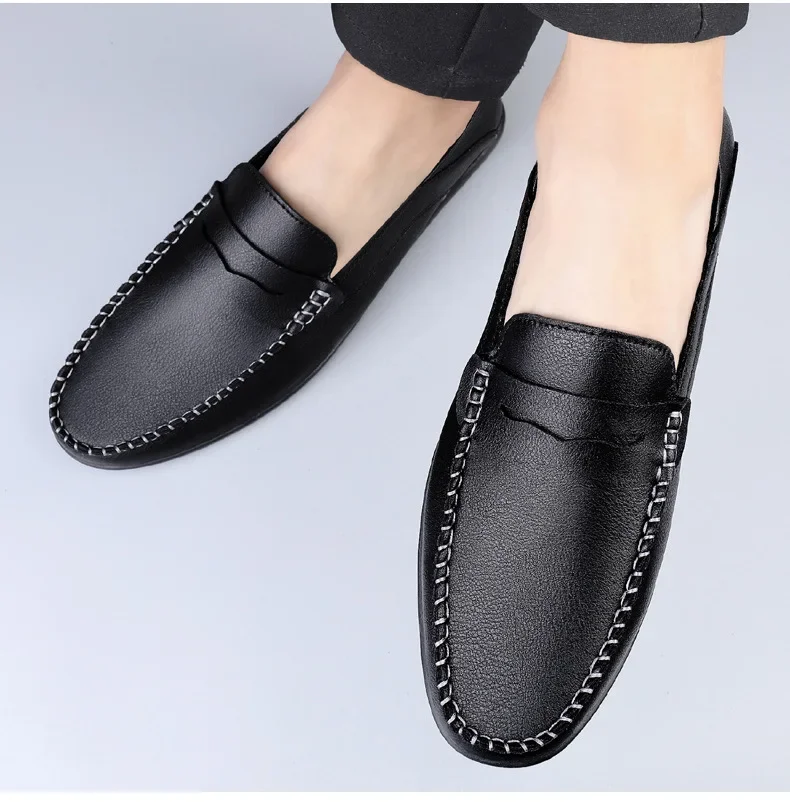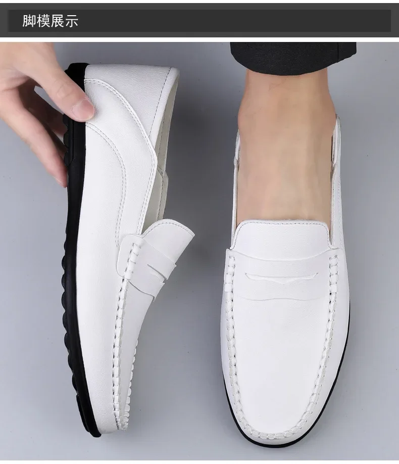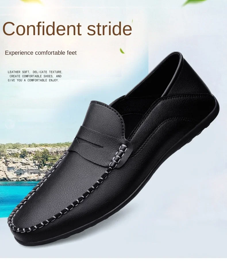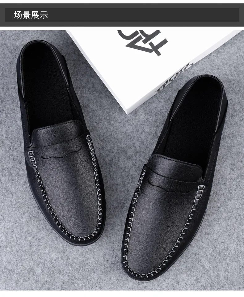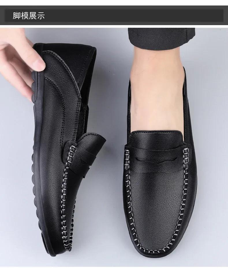 Summer new men's casual leather shoes spot 2024 cross-border large size trend fashion soft bean shoes low-top men's shoes