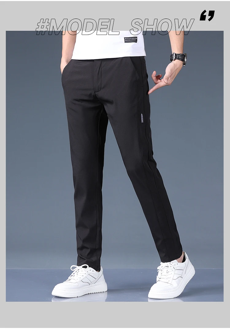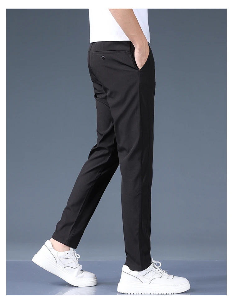 Summer Thin Ice Silk Stretch Men's Pants Business Casual Elastic Waist Smooth Trouser Suit Pants Male Brand Clothing