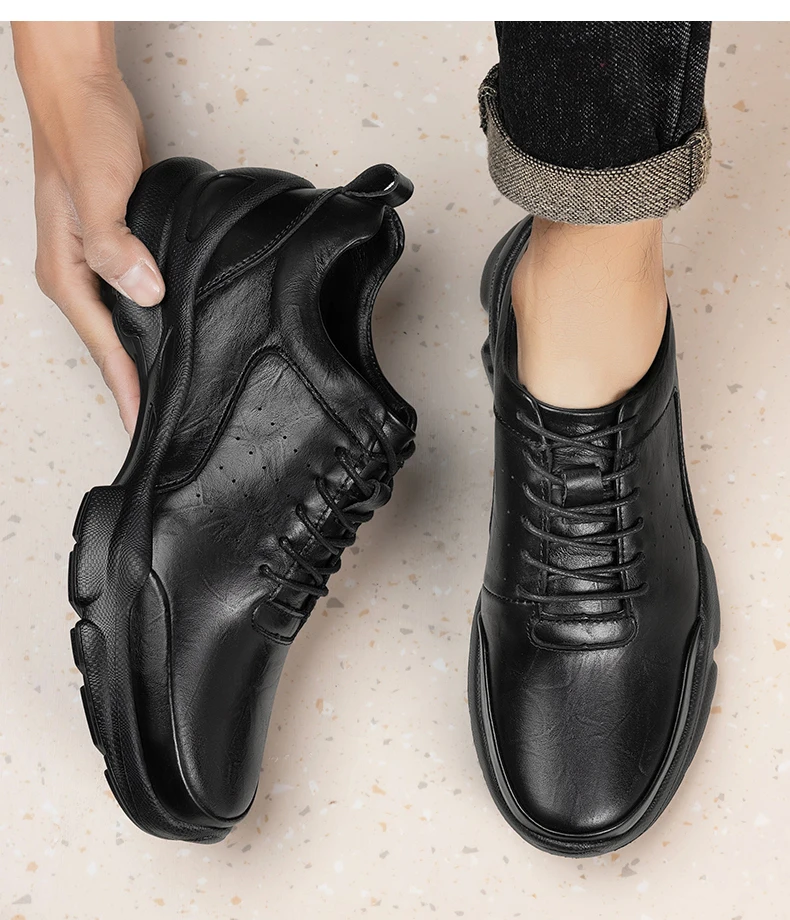 The 2025 New Men's Casual Shoes Feature A Genuine Cowhide Upper, Comfortable Lining, and Street Fashion Business Leather Shoes
