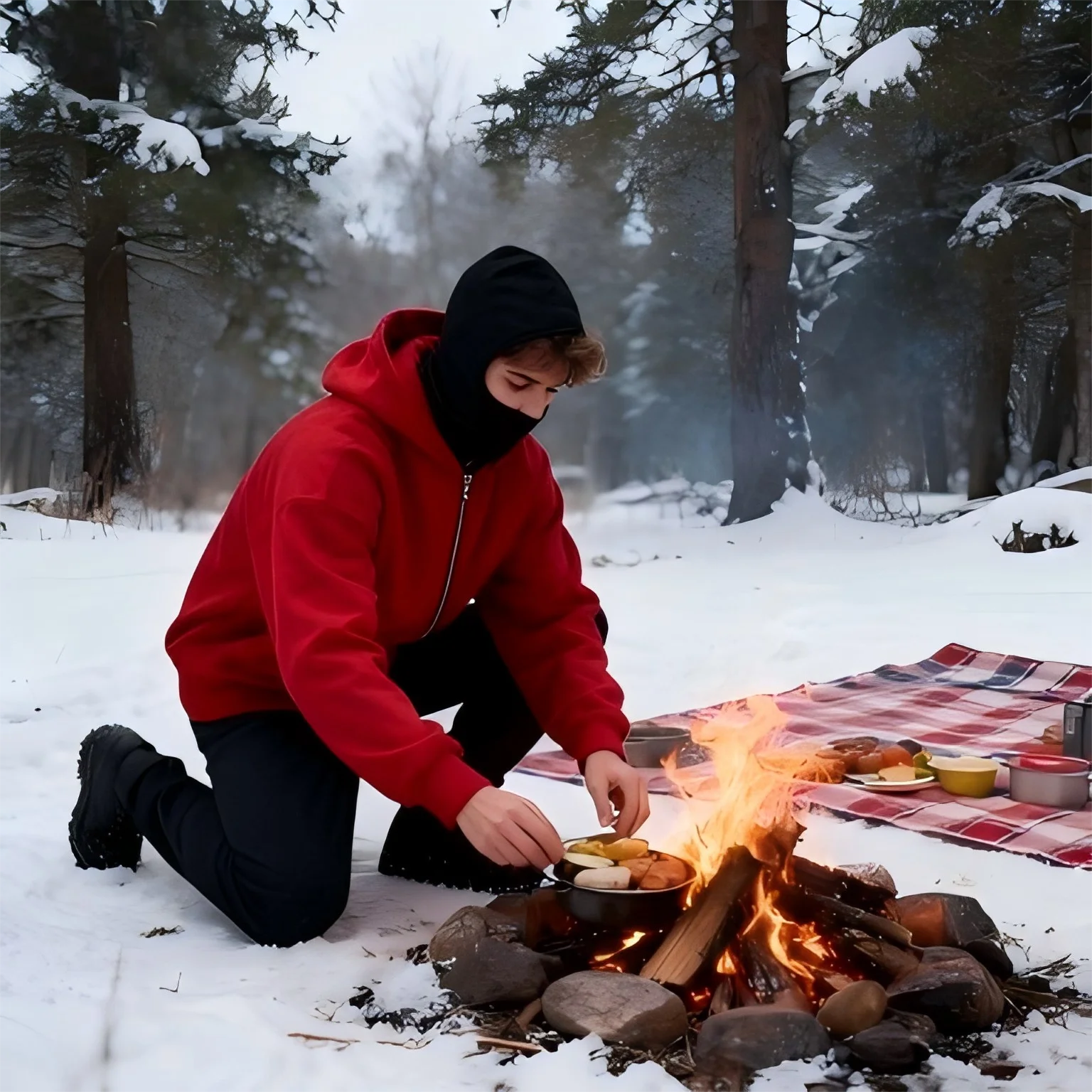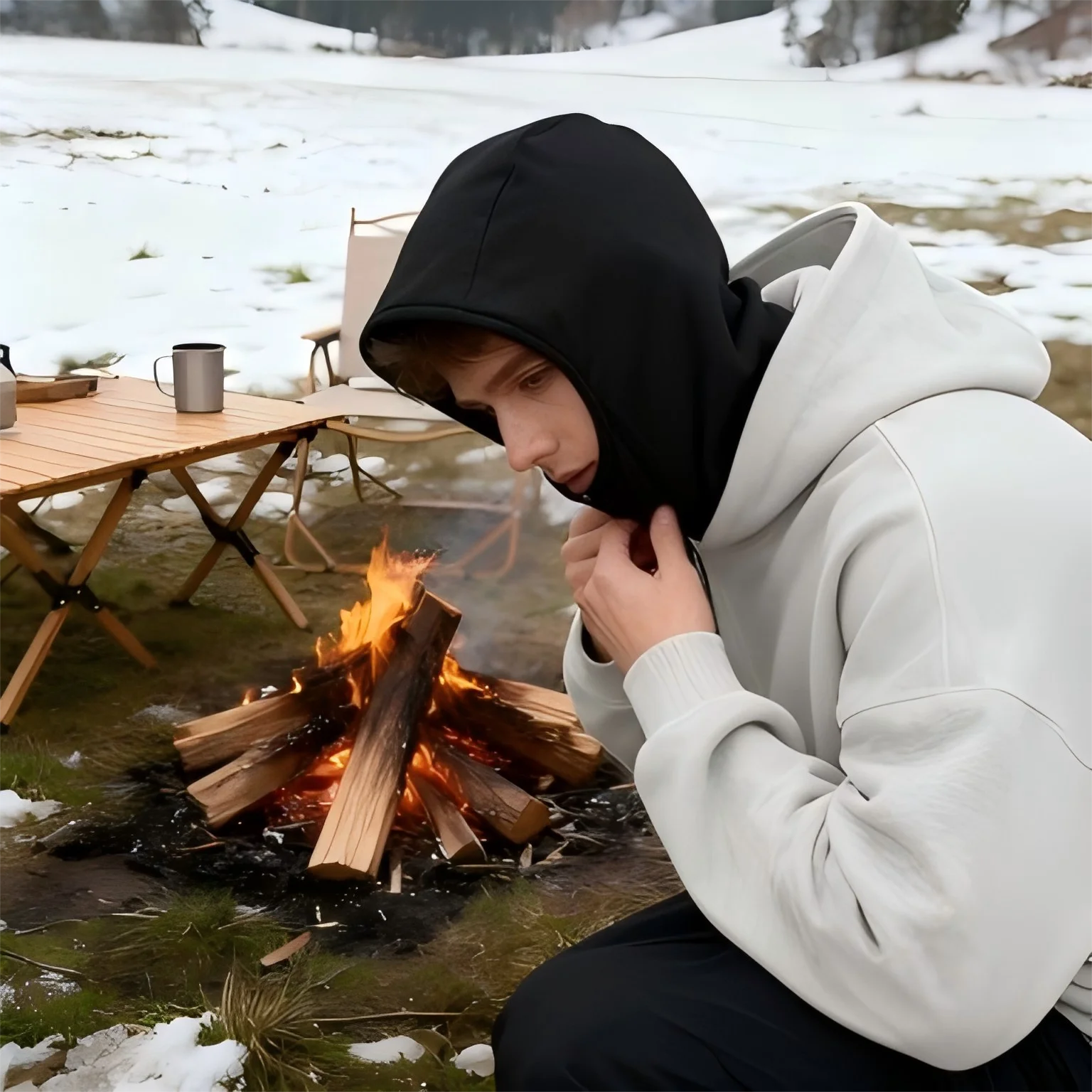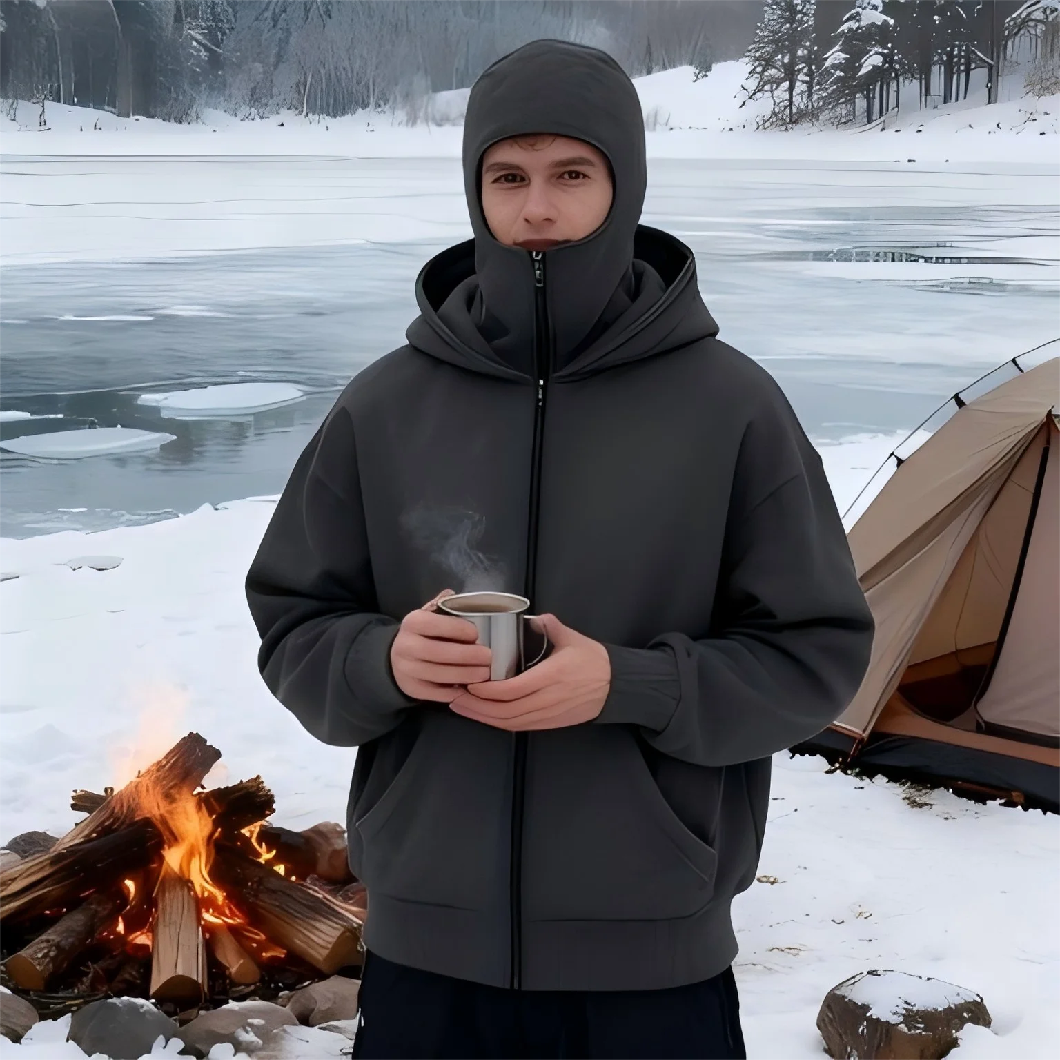 Unisex Double Hooded Fleece Sweatshirt Woman Balaclava Hoodie Half Zip Warm Outfit for Fall Winter Men Clothing Masked Outfit