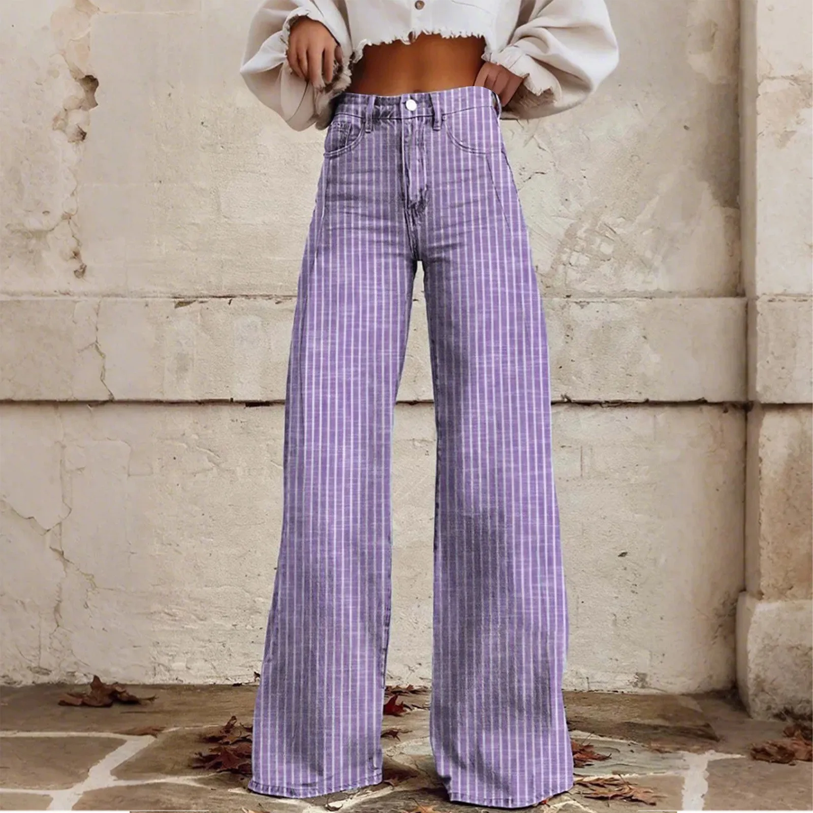 Women Bootcut Jeans Fashion Trendy Color Striped Wide Leg Straight Leg Mopping Pants Casual Street Style All-Match Denim Pants