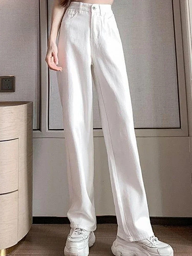 Women Spring High Waist Loose Denim Wide Leg Jeans Lady Street Korean Version Baggy Pants White Fashion Straight Leg Trousers