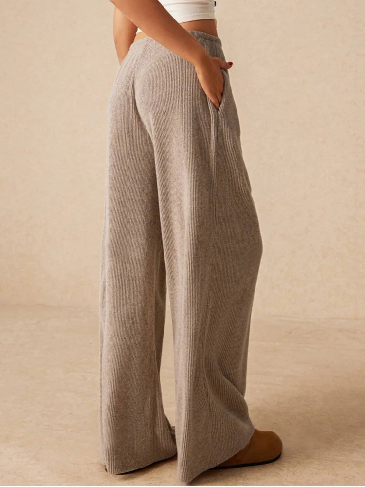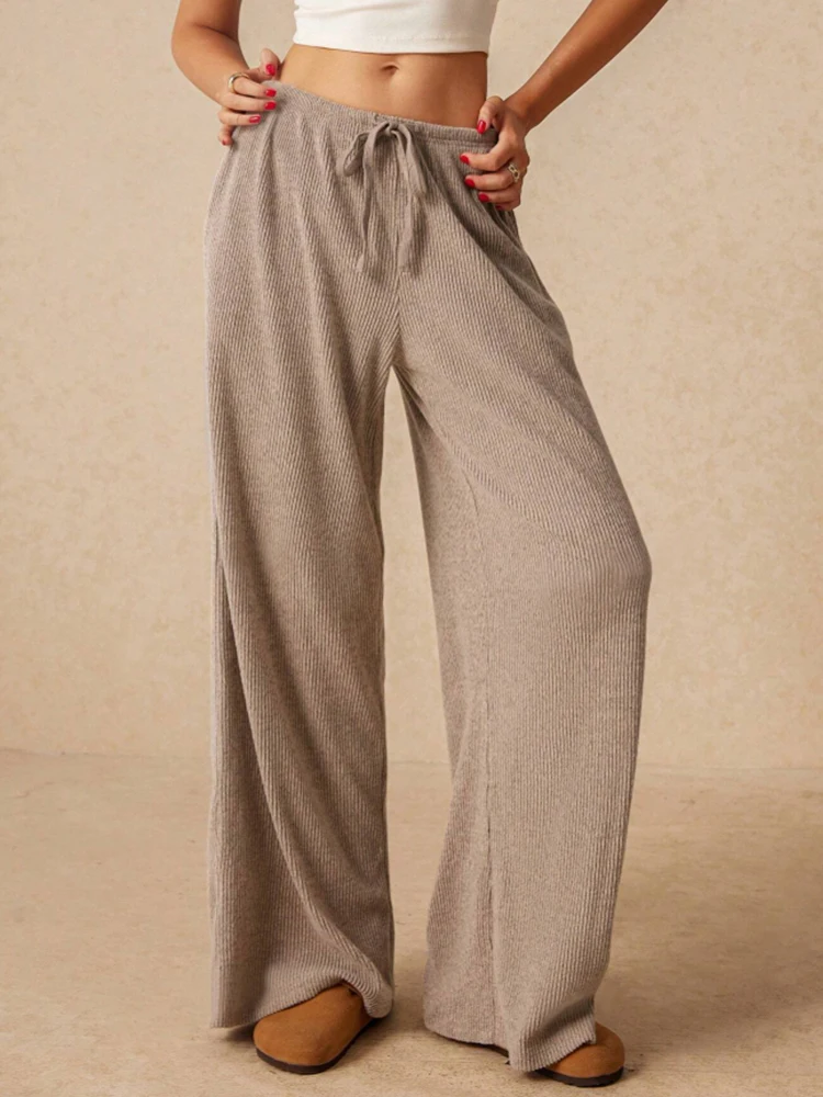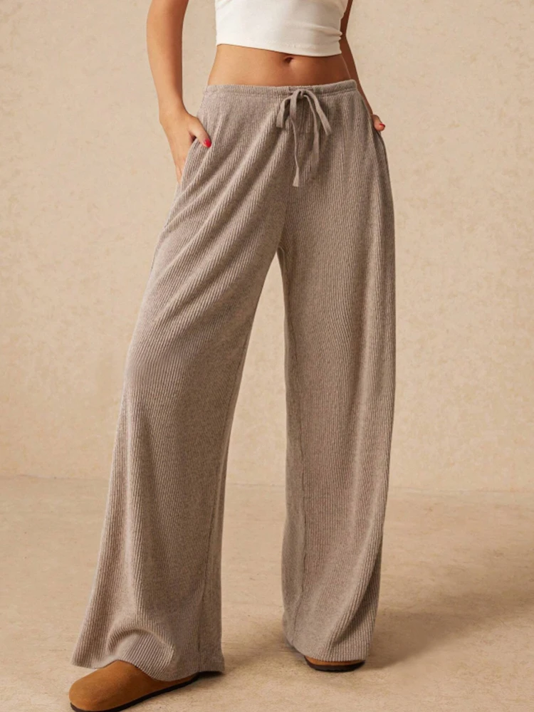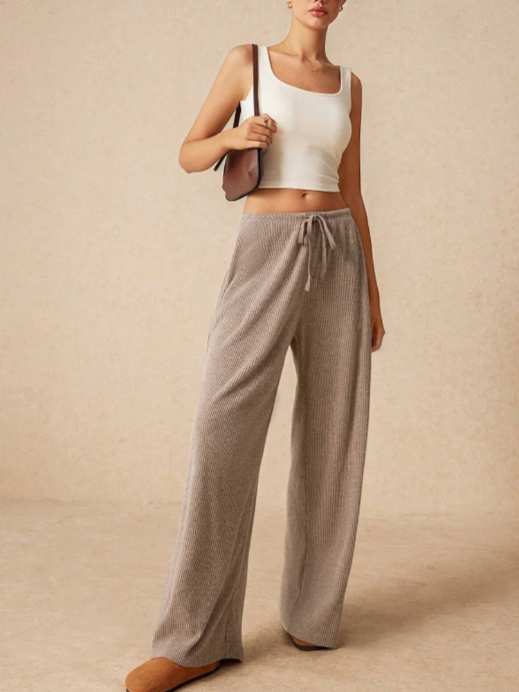 Women's Casual Slim, Simple and Comfortable Daily Versatile Solid Color Drawstring Straight Wide-Leg Trousers