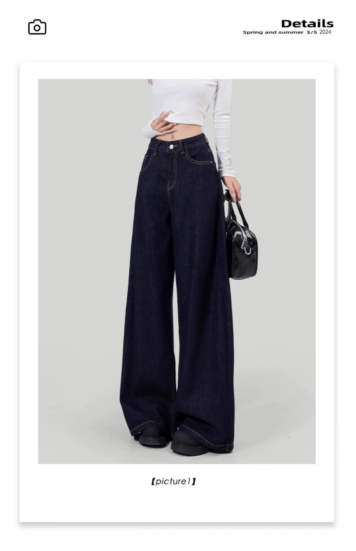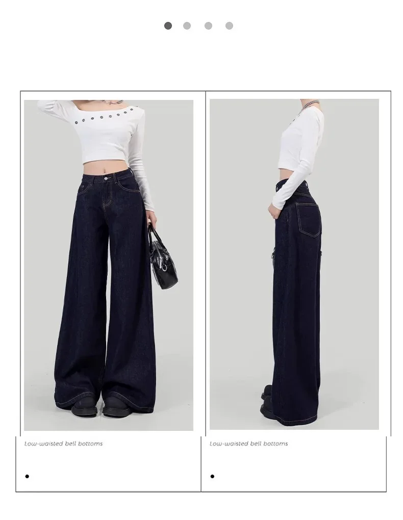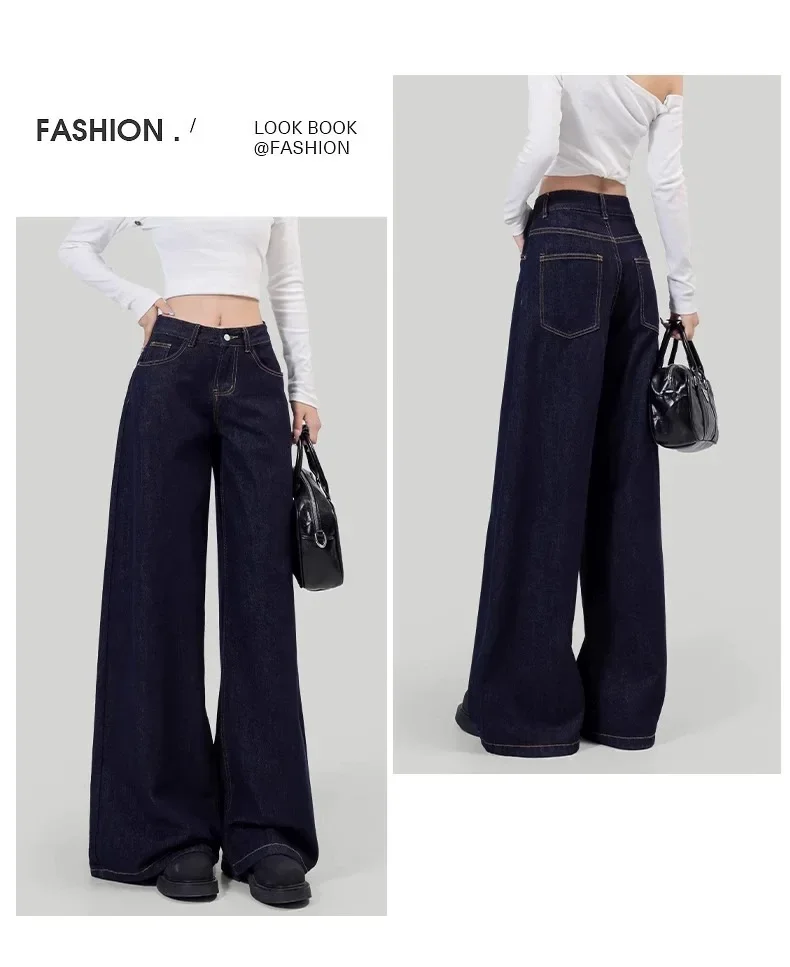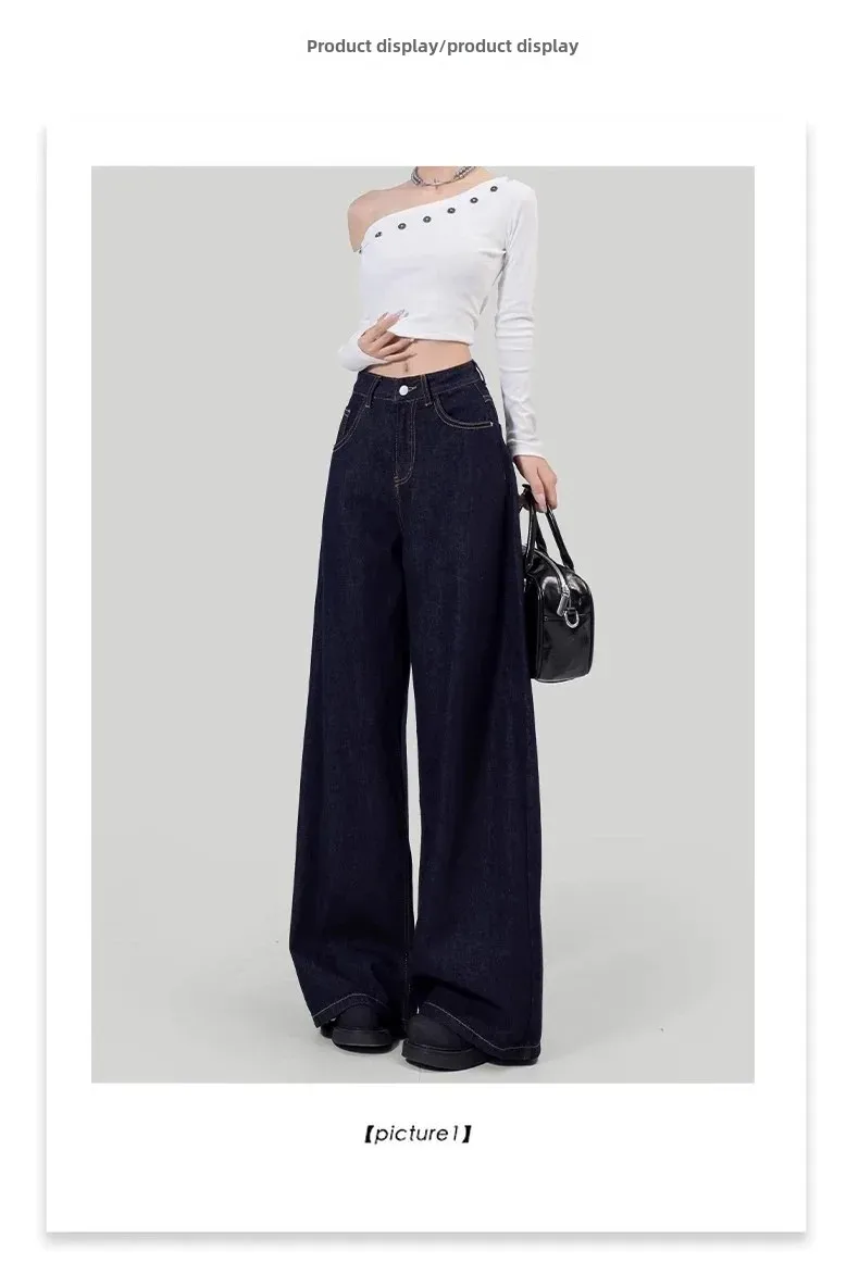 Women's Loose-Fit Jeans High-Waisted Straight-Leg Niche Draped Lazy Walking Wide-Leg Long Pants Deep Blue Autumn Season